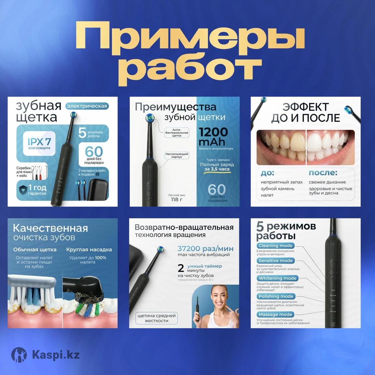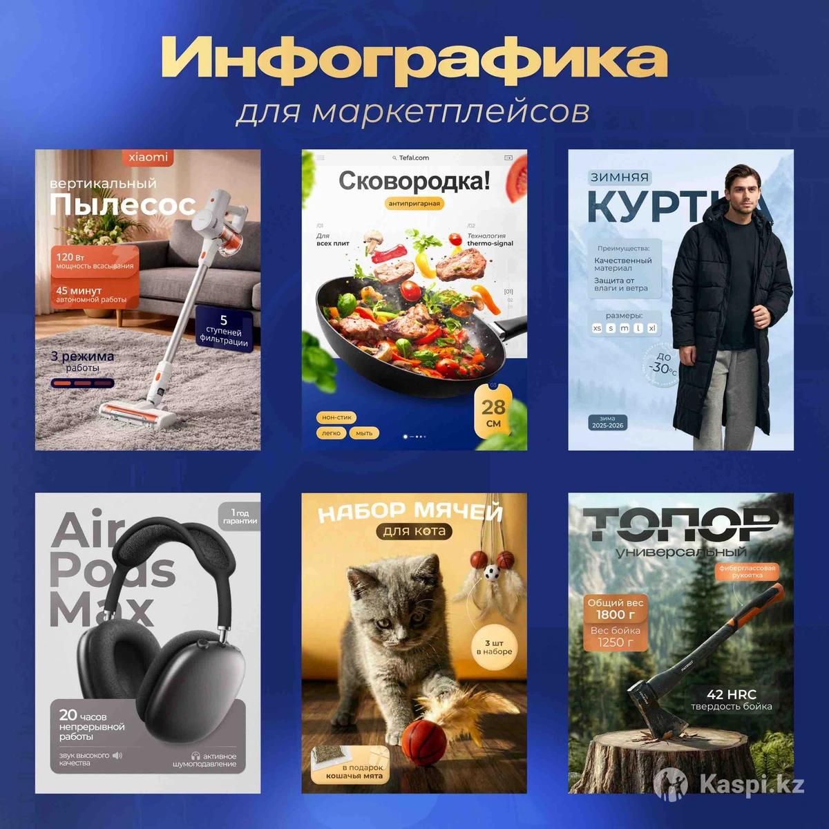 Здравствуйте. Я занимаюсь дизайном карточек товаров для маркетплейсов (Kaspi, Wildberries, Ozon), а также создаю рекламные баннеры. Моя задача — оформить карточку так, чтобы покупатель с первого взгляда понял, что это за товар и чем он отличается от других. Делаю аккуратный и понятный дизайн с логичной структурой, без визуального перегруза и с акцентом на ключевые преимущества. Подходит, если нужно улучшить внешний вид карточек или привести визуал в порядок. Если есть вопросы или хотите обсудить задачу — пишите.