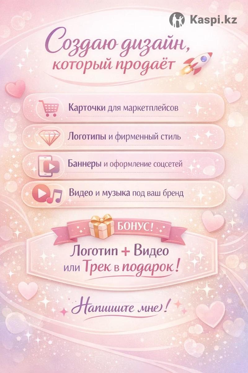 Создаю дизайн НЕДОРОГО, который продает 🚀 • Карточки товаров для маркетплейсов • Логотипы и фирменный стиль • Баннеры и оформление соцсетей • Видео через нейросети • Музыку и тексты под ваш бренд 🎁 Бонус: при заказе логотипа — в подарок видео или трек для вашего проекта. Быстро. Стильно. Под ключ. Напишите — подберем решение именно под ваш товар или бренд. ✨