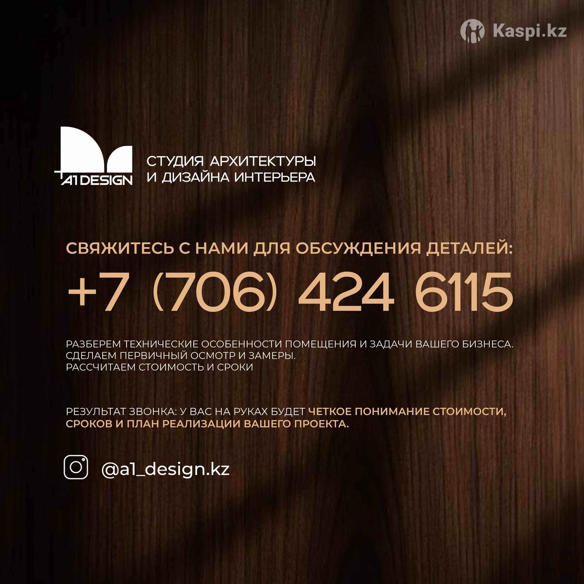 ТОО «A1 Design» — студия архитектуры и дизайна интерьера. Мы специализируемся на проектировании объектов, где дизайн напрямую связан с бизнес-задачами. Наша работа — это баланс между узнаваемым визуальным кодом и технической грамотностью проекта. Что входит в проект: • Планировочные решения • Фотореалистичная 3D-визуализация • Полный комплект рабочих чертежей для строителей • Подбор материалов, мебели и оборудования • Авторский надзор - по договоренности Свяжитесь с нами — мы дадим предварительную оценку по срокам и стоимости, исходя из ваших задач и площади помещения.