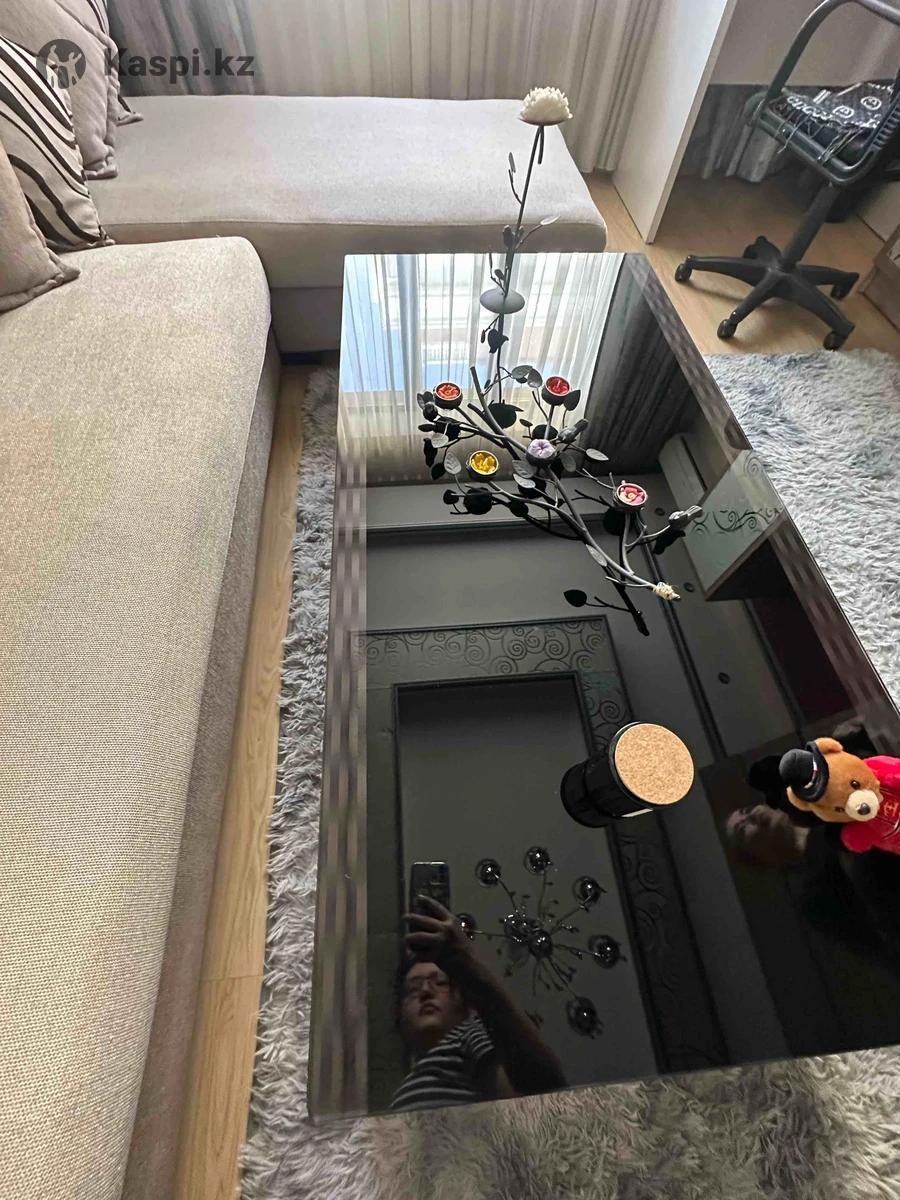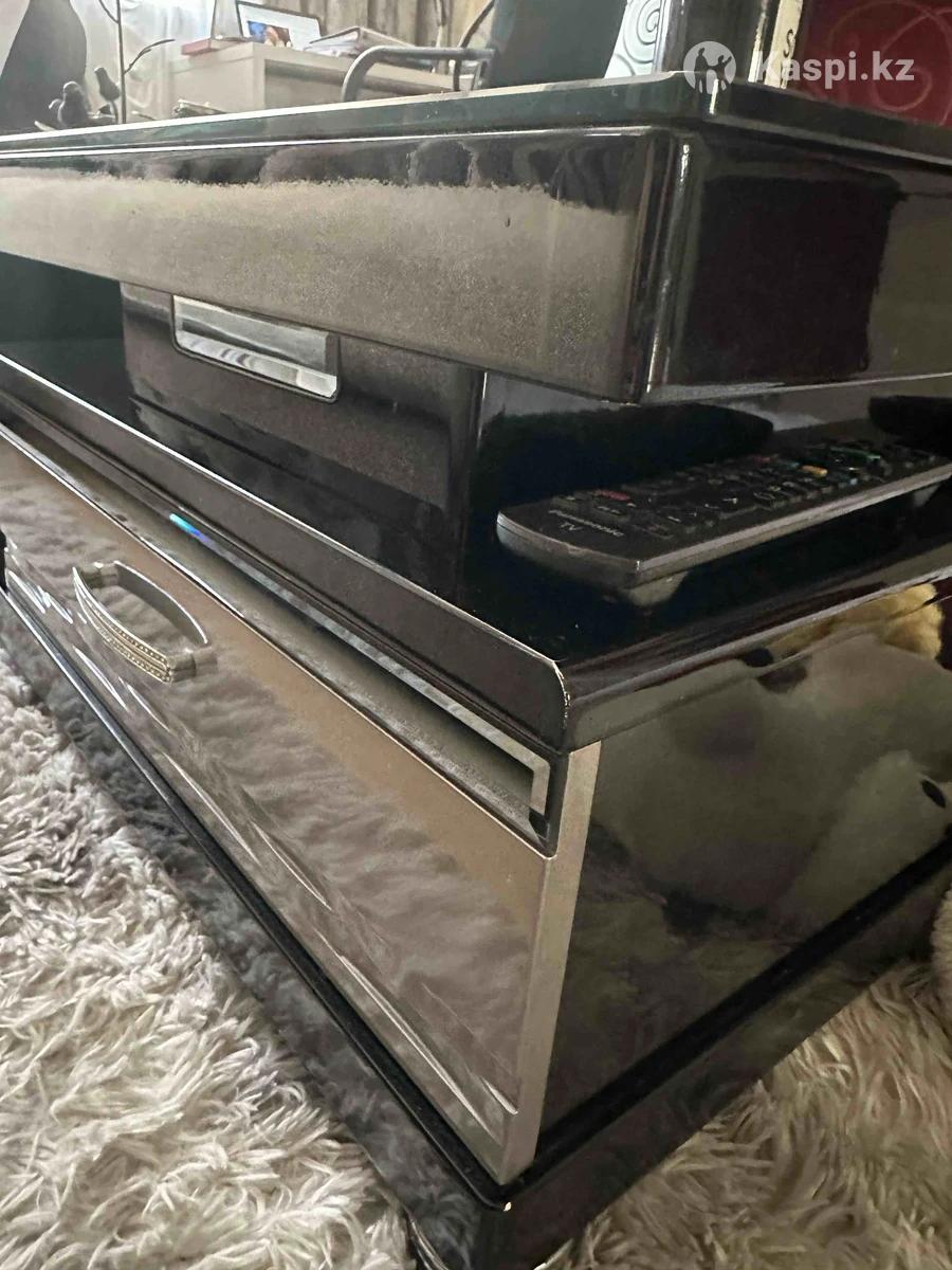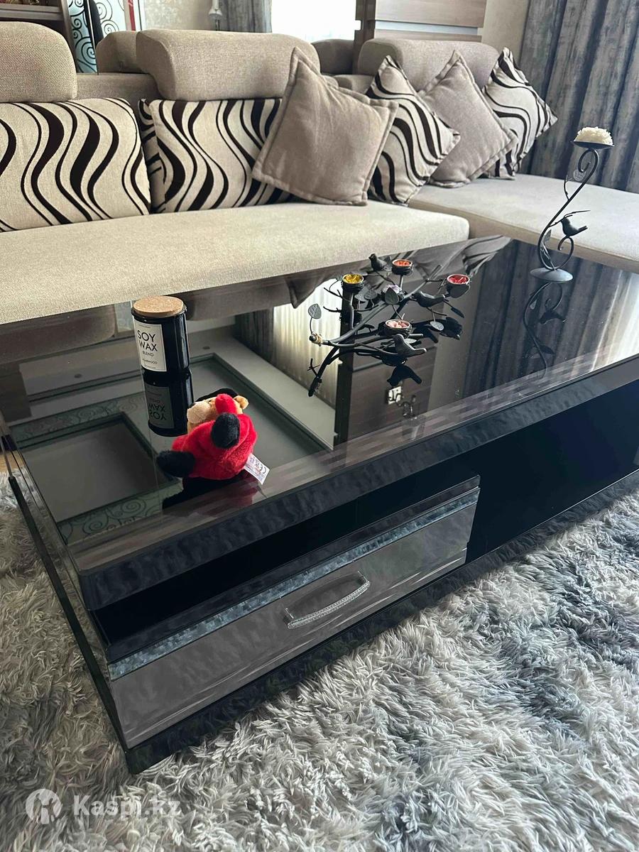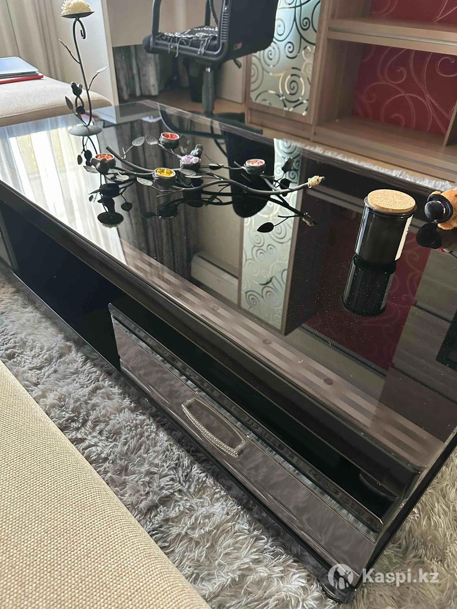 Дизайнерский журнальный столик ,чистое дерево 100% ,плюс каленное стекло. Тяжелый, массивный и устойчивый. С двух сторон полка выкатная и хранение с дверцей. В идеальном состоянии. 140см на 70 см размер высота 42 см