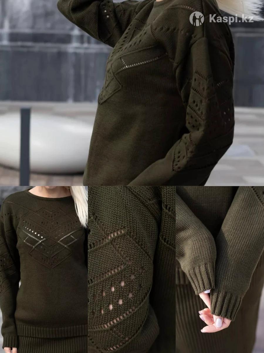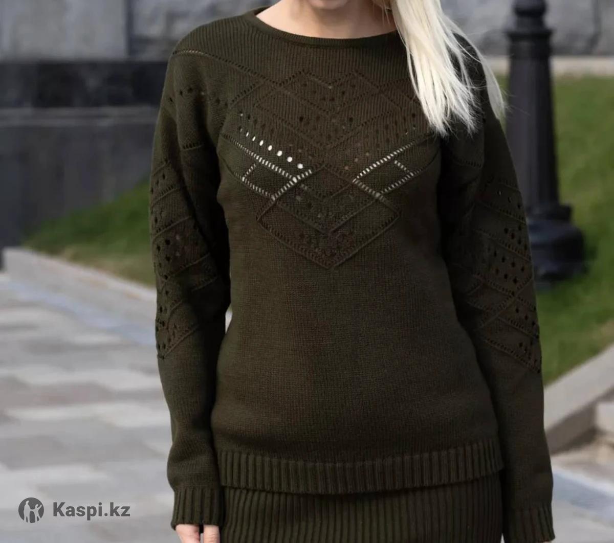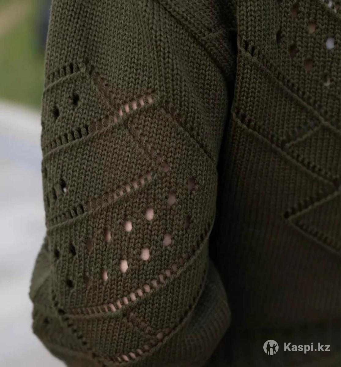 Джемпер вязаный ажурный, удлиненный,