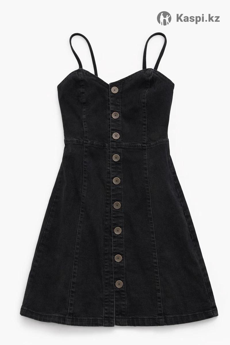 Mango Woman • оригинал Чёрное джинсовое платье с корсетным верхом и тонкими бретелями. Пуговицы по всей длине, красивый клёш от талии. Идеально садится по фигуре. Артикул 3439/90844. Размер XS. Состояние отличное
