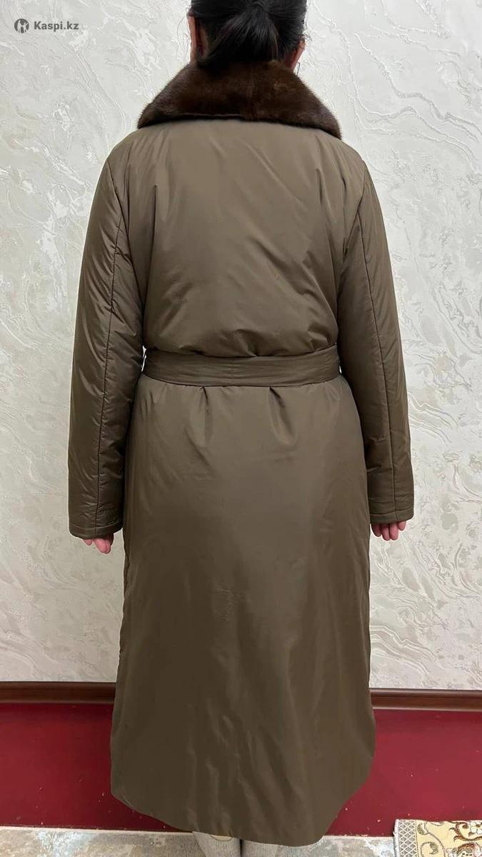 Длинный зимний пальто с норковым воротником и поясом