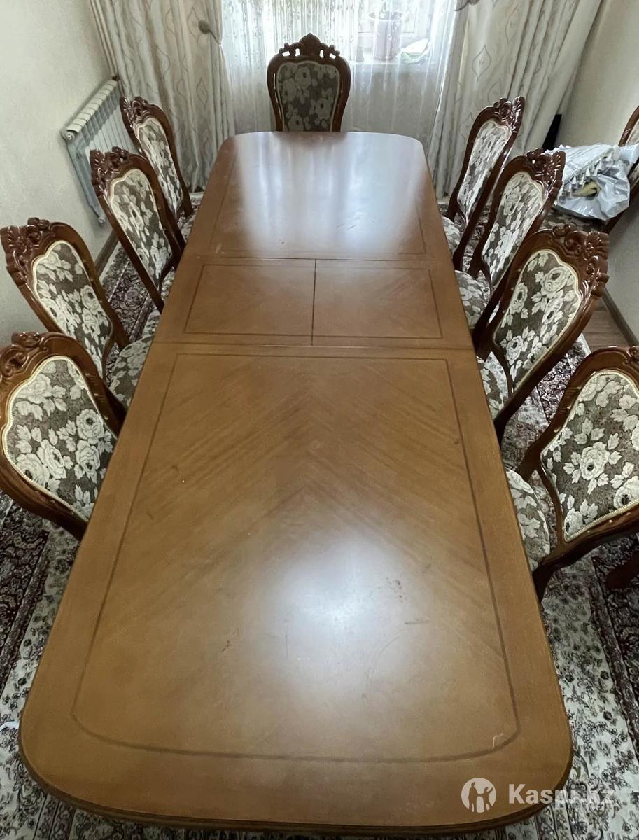 Продам объеденный стол со стульями осталось 6 стульев Размер: в сложенном виде - длина 2,50 м в разложенном виде длина 3,00 м ширина 1,06 м