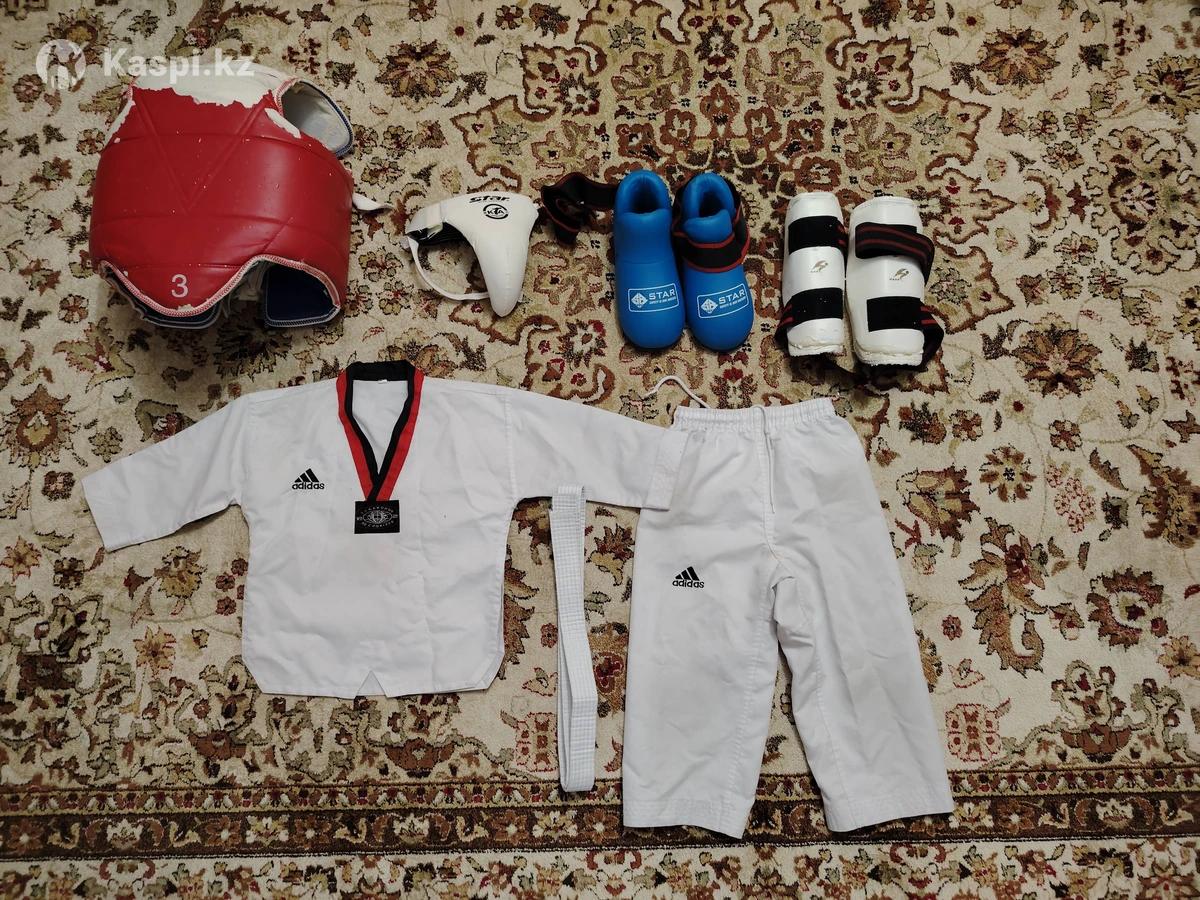 Все за 7000 тг отдам, инвентарь подойдет от 6 до 10 лет, кимоно на 6-7 лет. В нормальном состоянии не порваны ничего нигде, только защита немного облазить начала