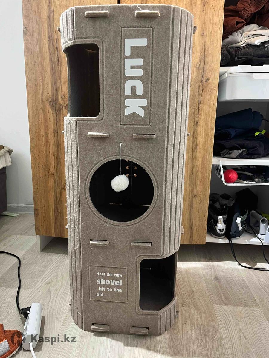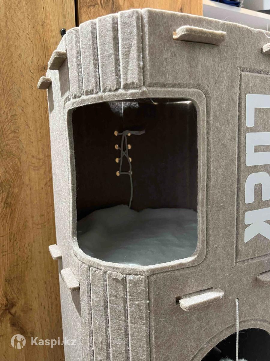 Классный трехэтажный домик, в высоту 90см37х37 Внутри в подарок мягкая подстилка коврик + бубенчик на втором этаже. Материал не знаю как называется, но он прочный, от отлично держит форму, не прогибается под давлением. Собирается и разбирается за 2 минуты. Кошки очень нравилось, особенно в зиму, но нам подарили второй другого цвета и этот стал не нужный. В отличном состоянии О материал можно точить когти.