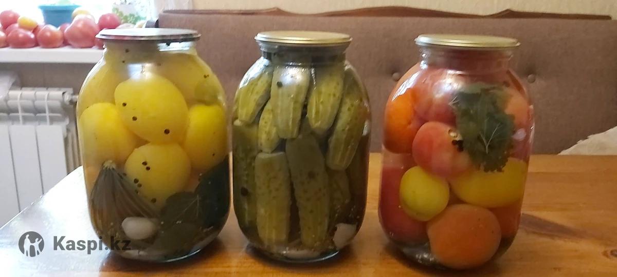 Продам домашние соления огурцы, помидоры. Цена за 2 литровую банку - 1600т Все вопросы по телефону.