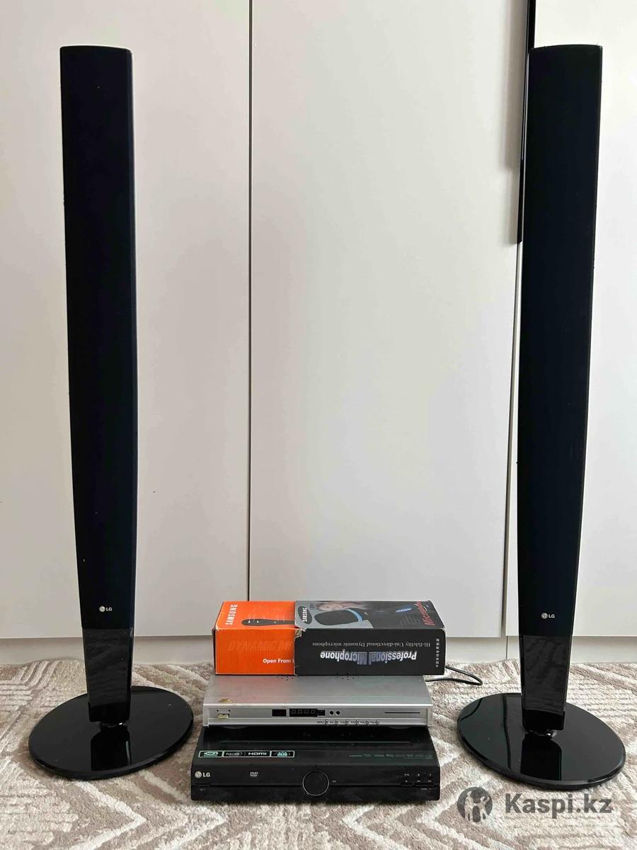 Домашний кинотеатр в хорошем состоянии. Бонусом микрофон со шнуром самсунг и тюнер от отау тарелки.