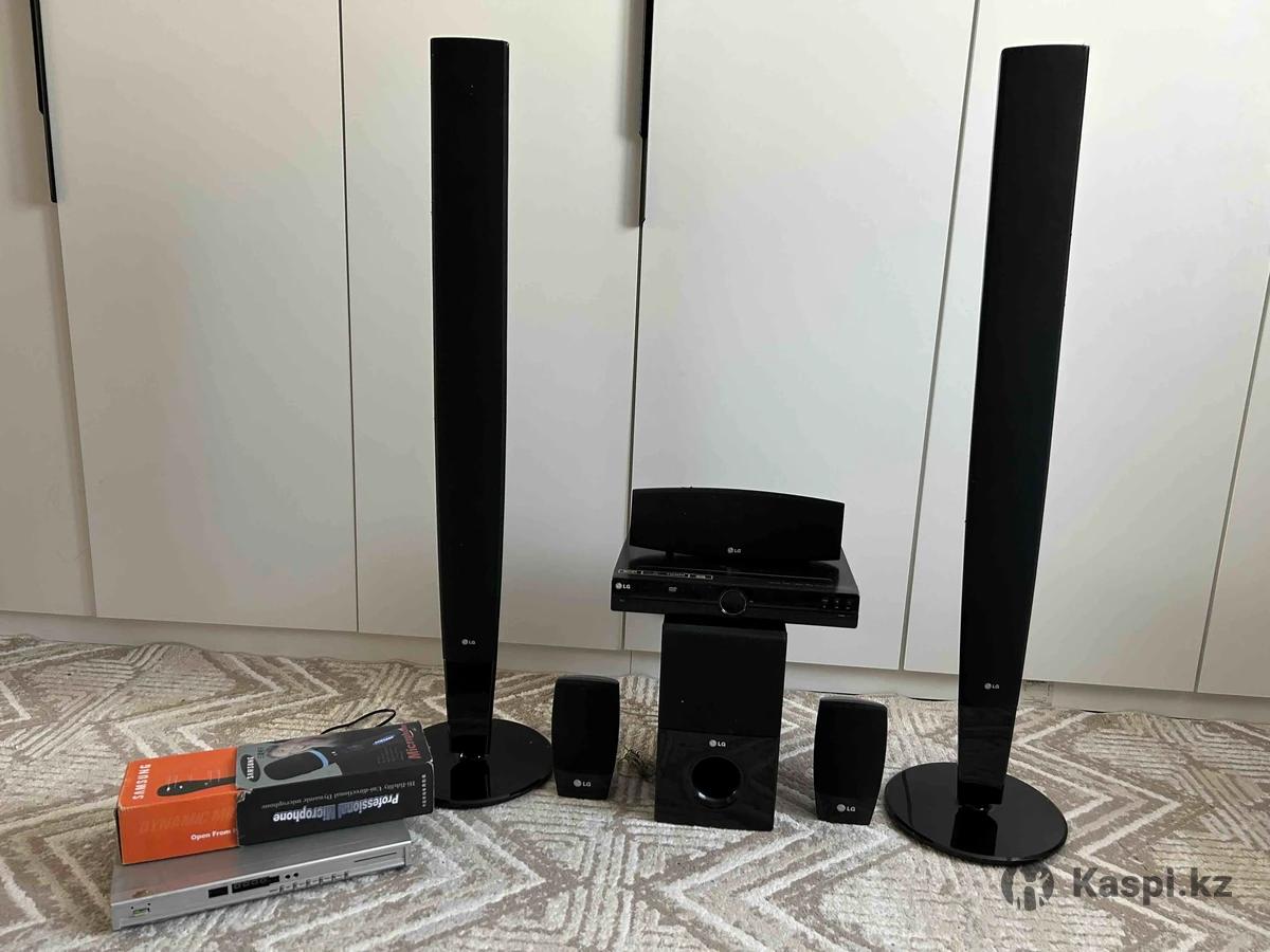 Домашний кинотеатр LG в хорошем состоянии. Бонусом тюнер от отау тарелки и микрофон со шнуром Samsung.