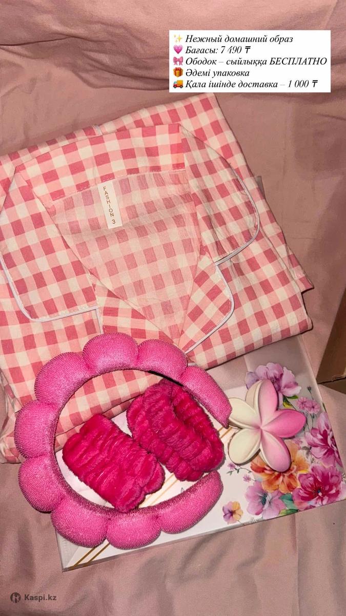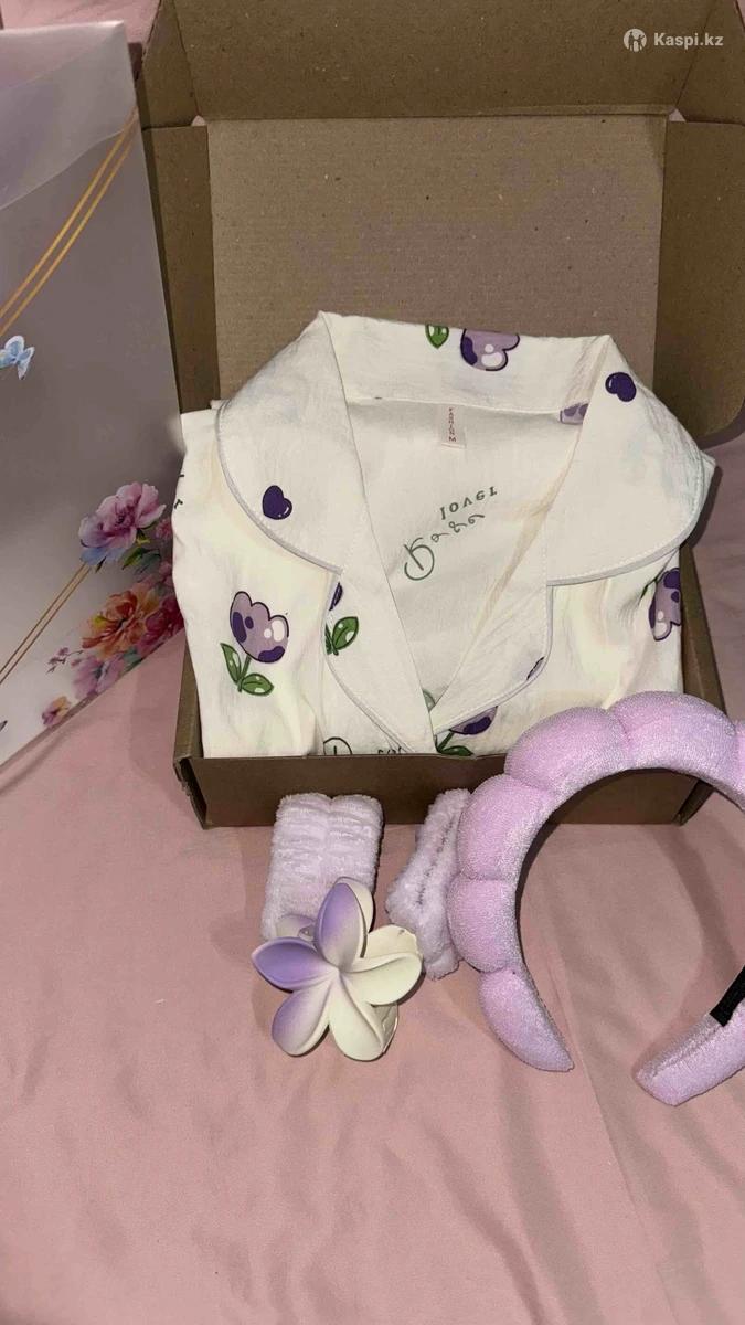 Корейский хлопок Жақындарыңызды өзіңізді қуантуға ең күшті сыйлық🥰 Бокс ішінде✨ Денеге жайлы пижама🌸 Ободок крабик БЕСПЛАТНО😻 Упаковка в подарок 🎁