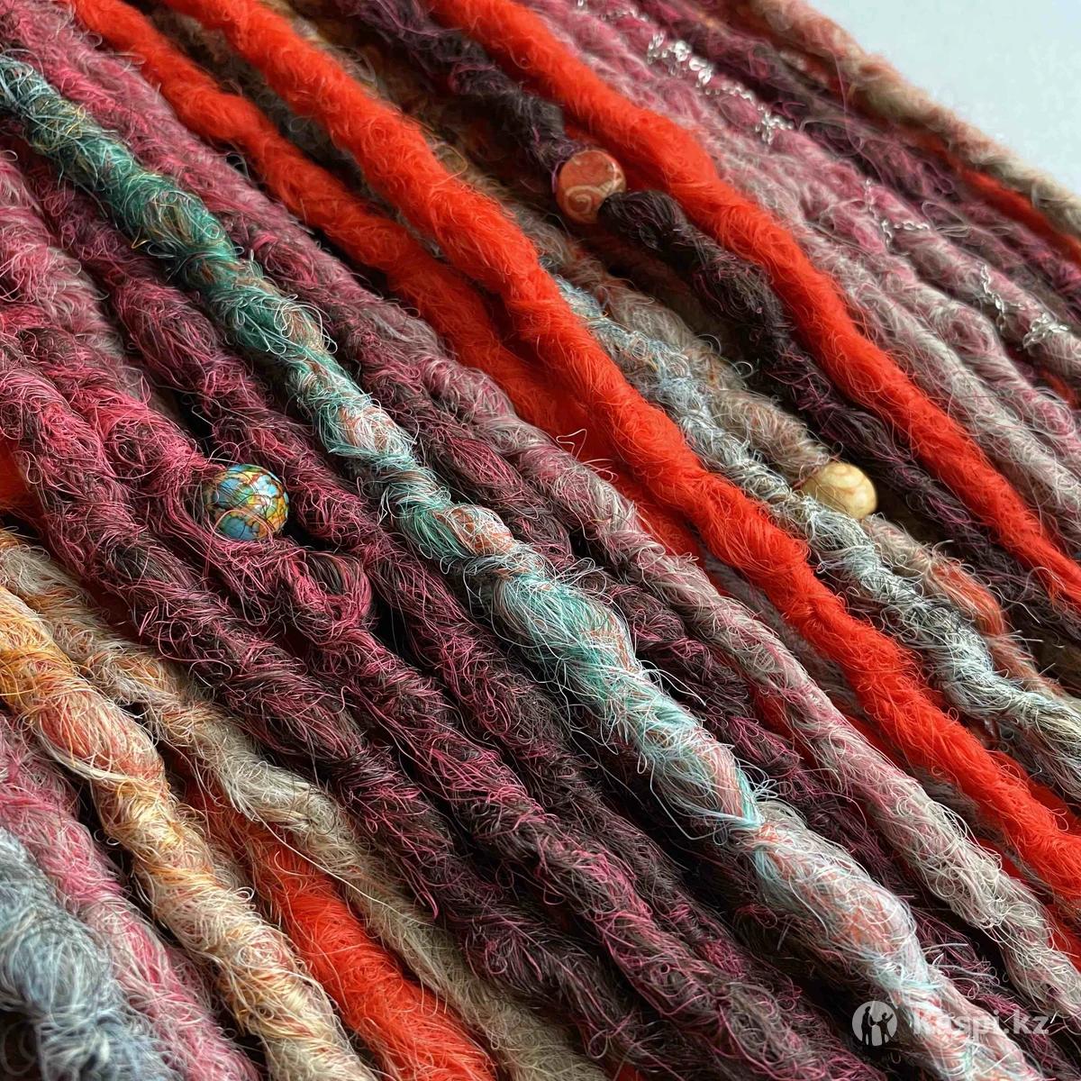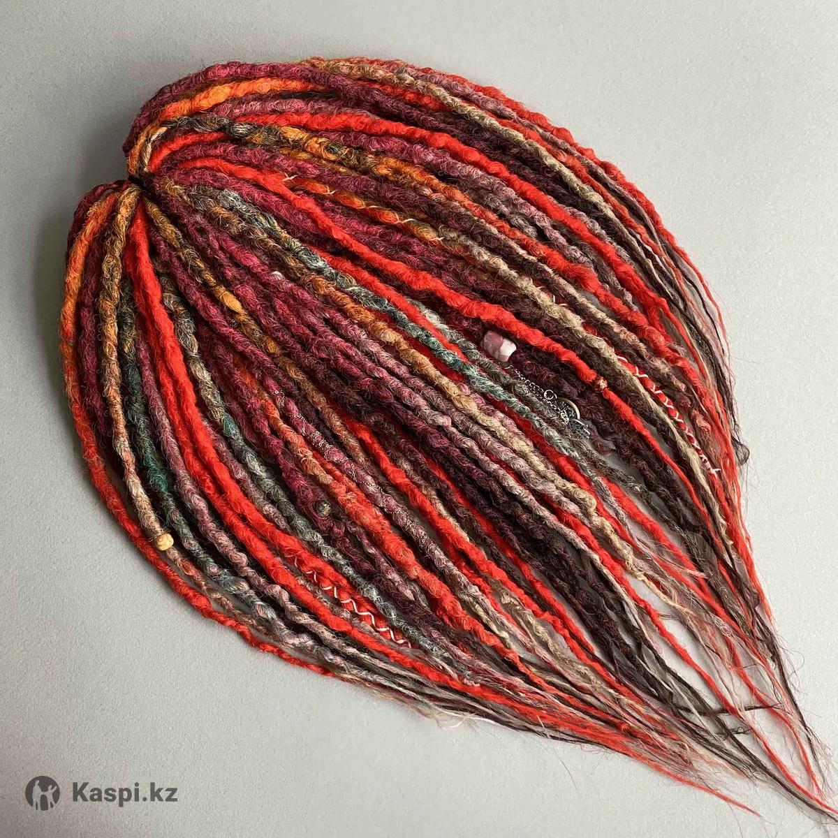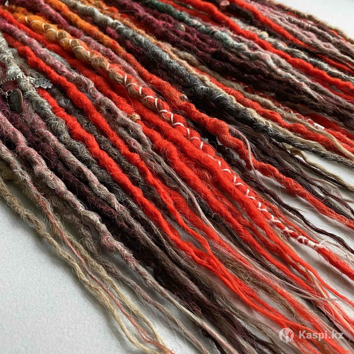 Комплект из дредов: - д.е. дреды разных фактур - 50 шт (100 кончиков) - 55-60 см - объемный - многоразовый(можно вплетать несколько раз) - ручная смешка - украшения и декор в подарок Комплект вплетался один раз,прошел коррекцию, сан обработку и термообработку. Цена указана за комплект дредов и вплетение😍