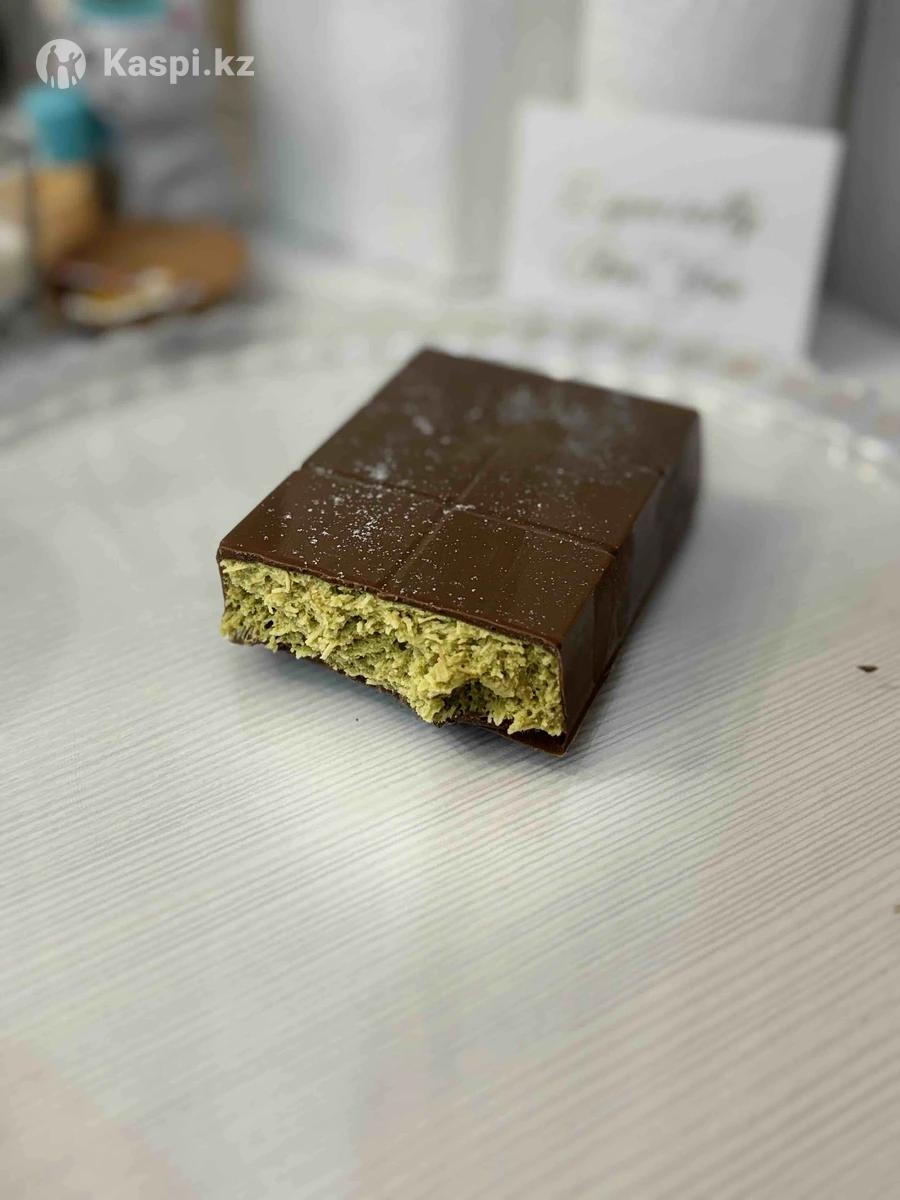 Дубайский шоколад с начинкой из натуральных турецких фисташек. Много влажной начинки и тонкий слой шоколада. На фото шоколад в замороженном виде,кто любит жидкую начинку,можно просто подержать в теплом месте. В составе используются только натуральные турецкие фисташки,свежее тесто катаифи,тахини и настоящий бельгийский шоколад Callebaut.