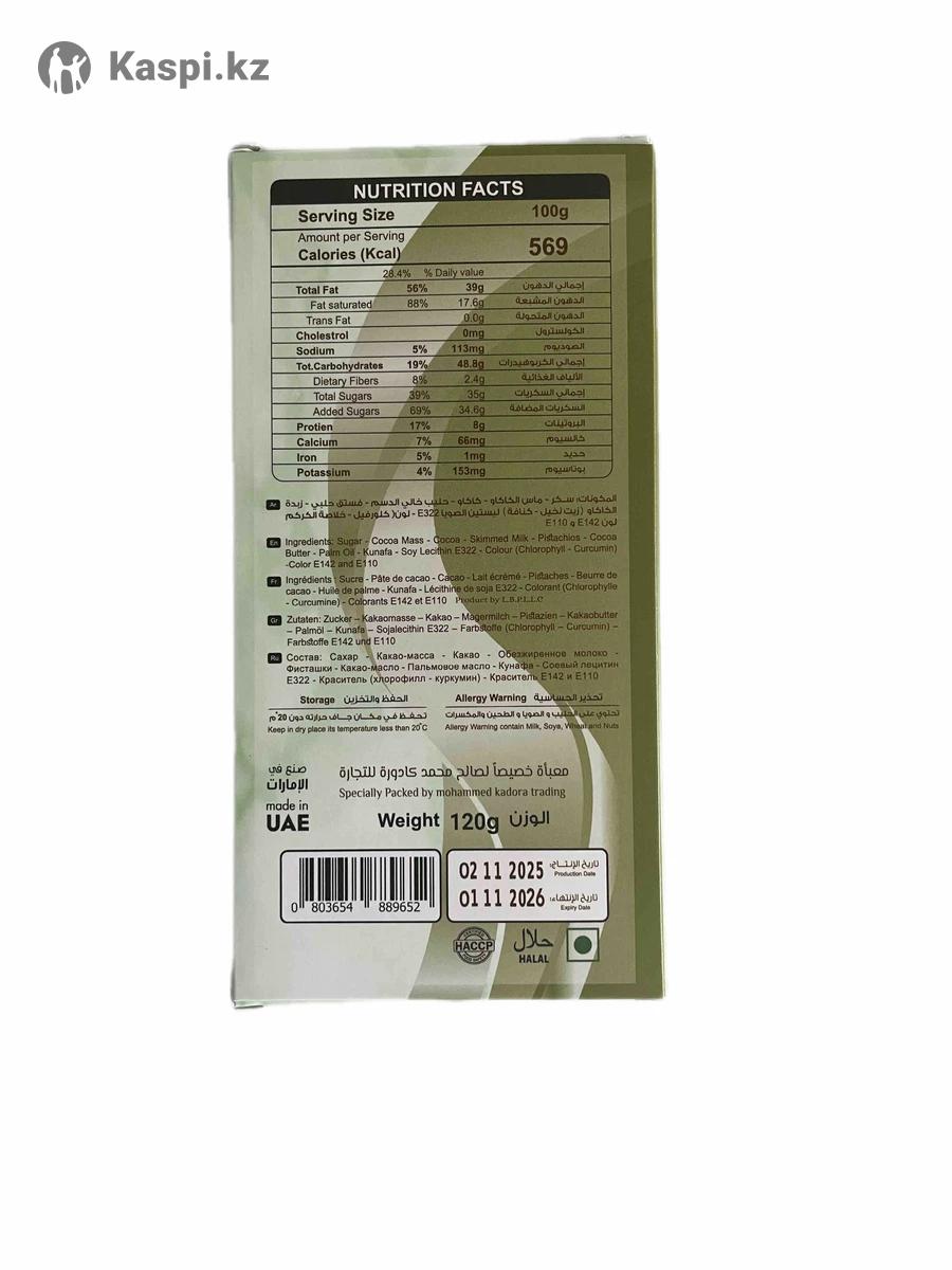 Продается дубайский шоколад из Дубая. Хороший подарок порадовать своих близких и любимых в преддверии 8-марта а также во время священного месяца Рамазан, в том числе на ифтар! Вес нетто 120 грамм.