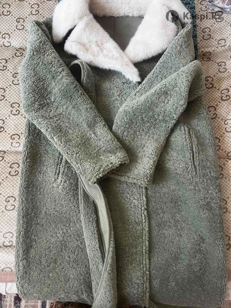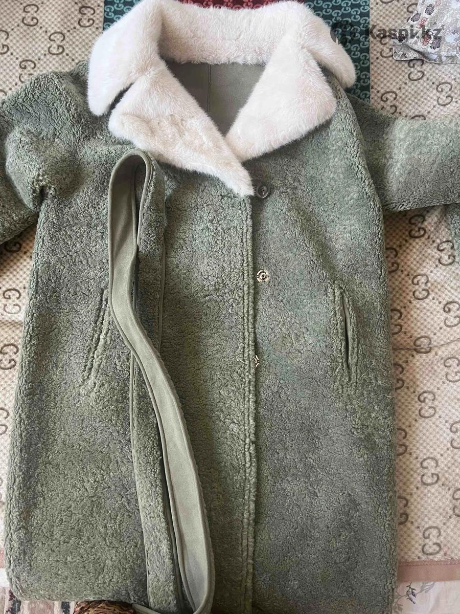 Женская дубленка. Двух сторонняя, воротник норка. Цвет мята, теплая легкая