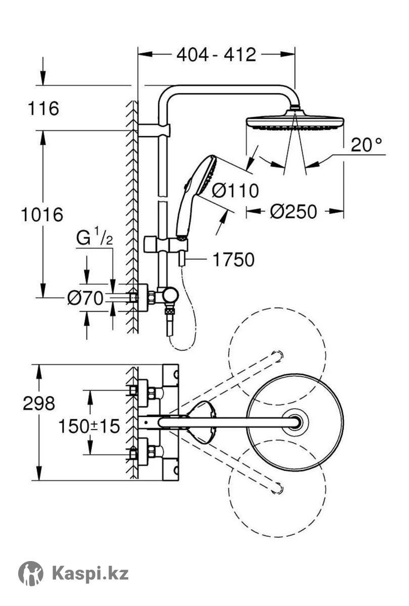 Душевая система с термостатом Grohe Tempesta 250