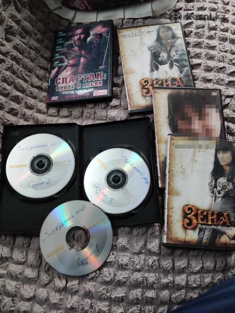 Диски с фильмами . Зена 6 сезонов - 2600тг, Затерянный мир 3 сезона - 2600тг, Спартак (кровь и песок) 2000тг.