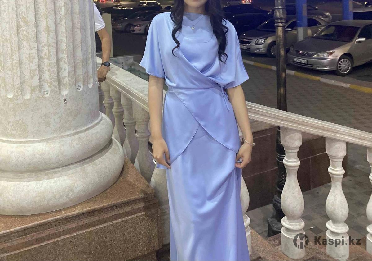 Атласная двойка, голубой цвет, 42размера, носила 1раз летом, срочно продается