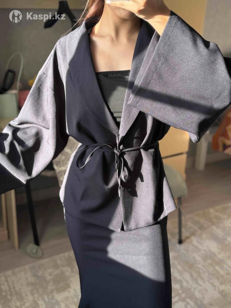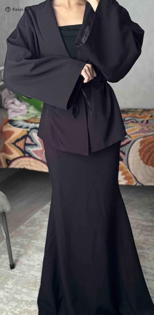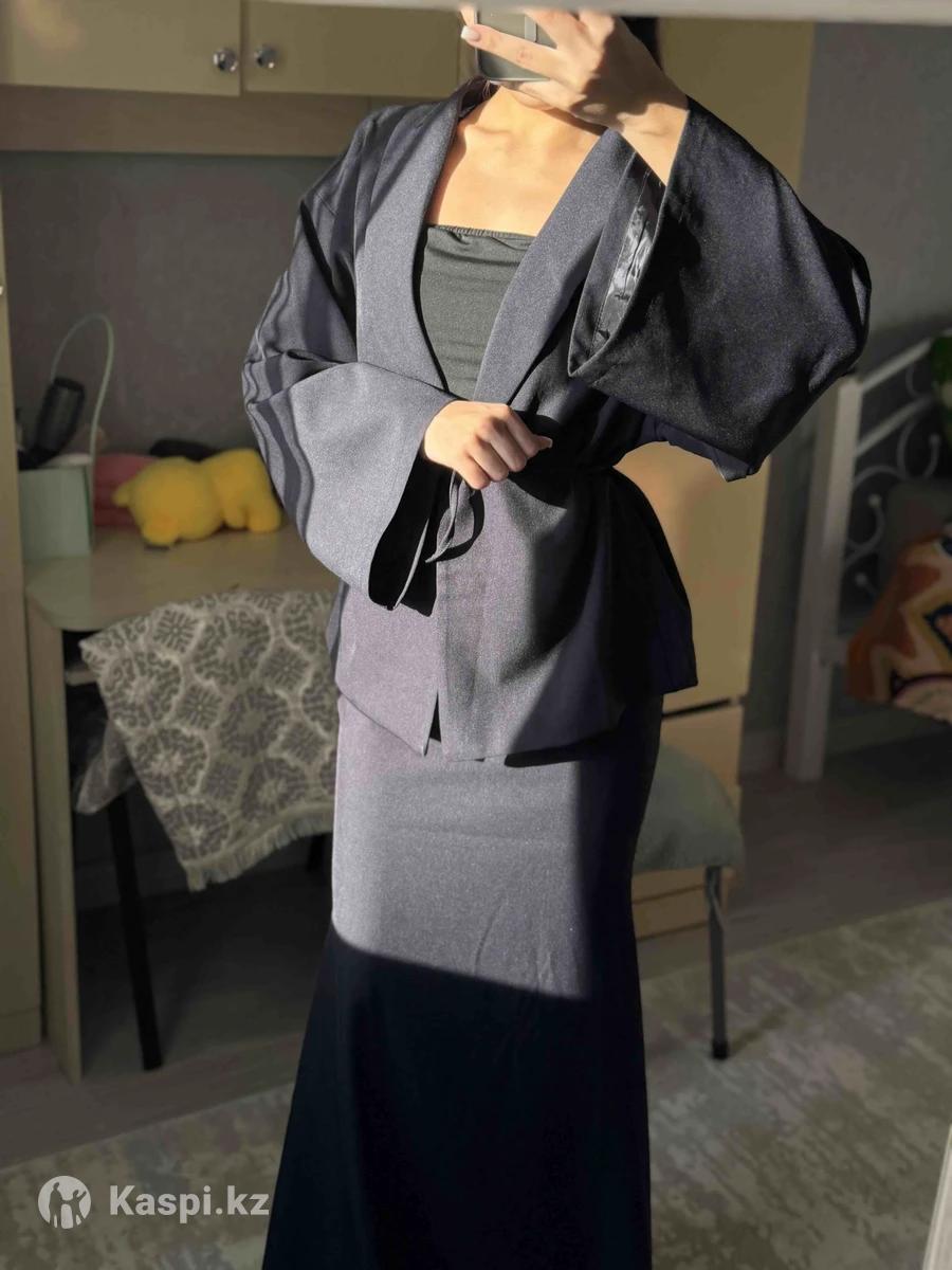 Шикарна двойка: кимоно и юбка «рыбка» Абсолютно новое, ни разу не носила (с биркой) Размер S (42/44) цвет-глубокий темно-синий(выглядит очень элегантно). Юбка идеально подчеркивает фигуру, выглядит стильно и дорого. Качество отменное, ткань приятная и достойная по цене. Брала себе, но к сожалению немного размер не подошел. Покупала за 20.500.