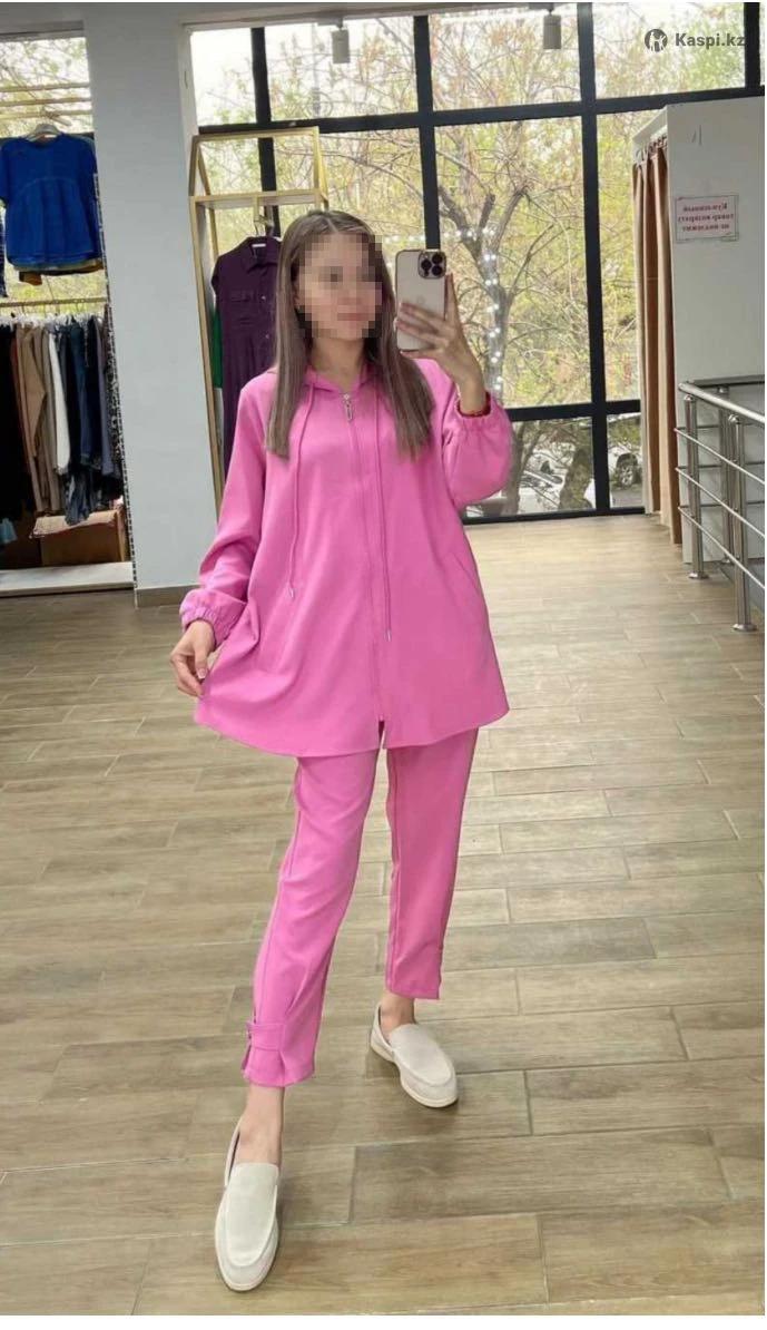 Двойка бомбер + брюки свободного кроя Цвет:однотонный розовый Размер:44 (М) Производство:Турция