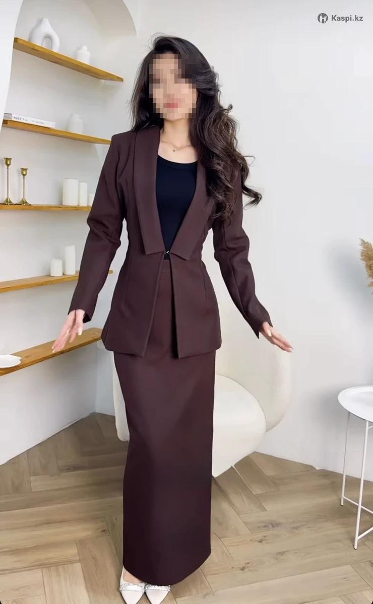 Двойка (пиджак с юбкой) в красивом трендовом цвете. На пиджаке есть завязки сзади, чтобы сделать пиджак под вашу талию.юбка прямая, с четкой линией пояса. Новая, с этикеткой. Только писать