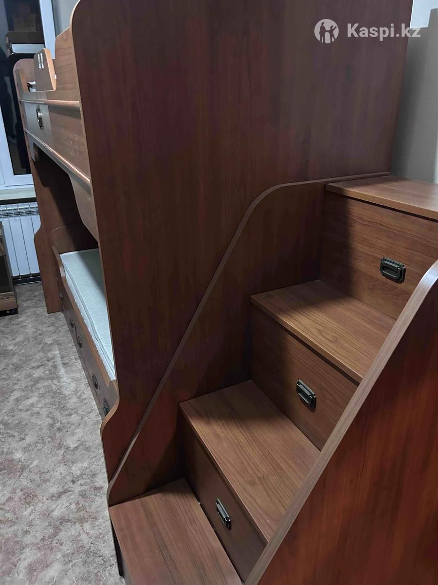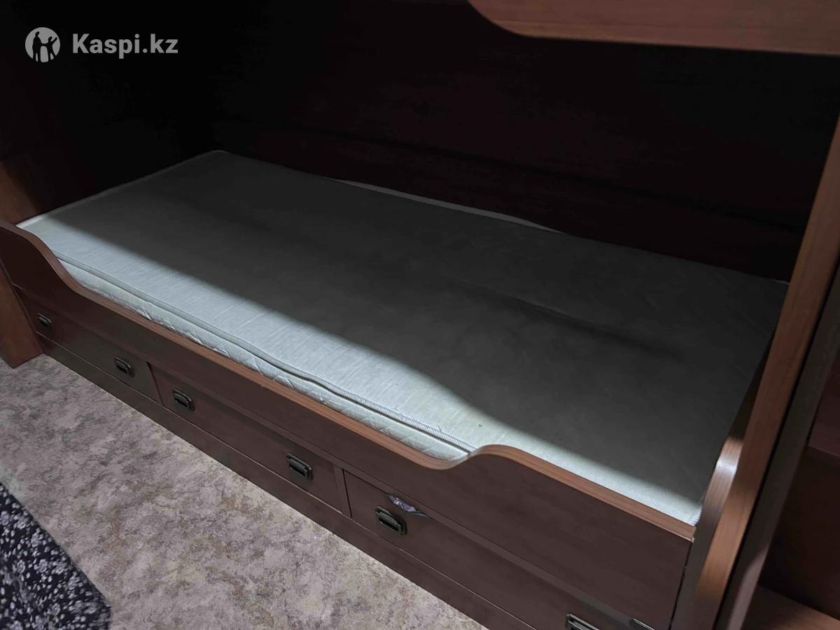 Срочно продается. Готов подвинуться по цене. В связи с переездом. Двухъярусная кровать со множеством ящиков. Отличное решение для детской комнаты. Кровать с размером 2000х900. Есть два ортопедического матраса. Качество белорусской мебели. В свое время брал за 839000 тг. Продам в комплекте с лестницей в которой имеются полки для игрушек от.д. Самовывоз.