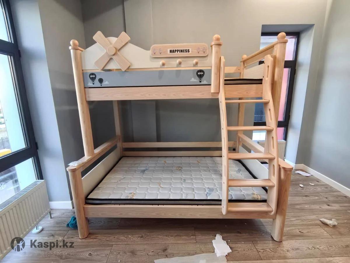 Детские двухъярусные кроватки, массив дерева Ясень и каучуковое дерево, размер верхняя часть 90 на 190 и нижняя часть 120 на 190 см, матрасы ортопедические 2 шт входят в комплект и стоимость. Звоните. Цена со скидкой.