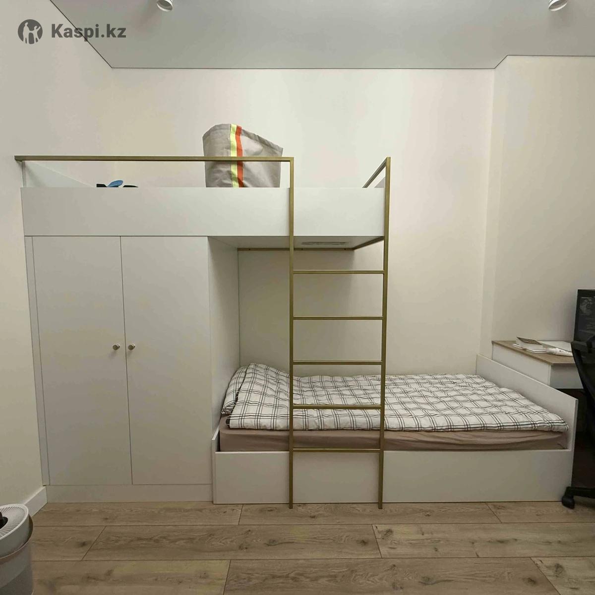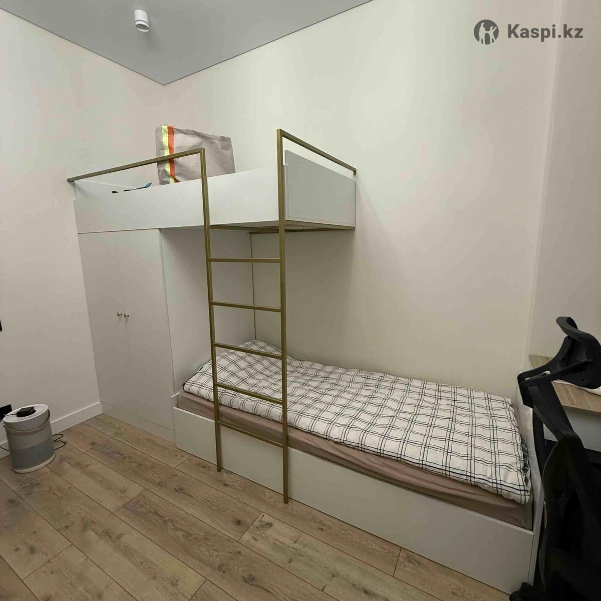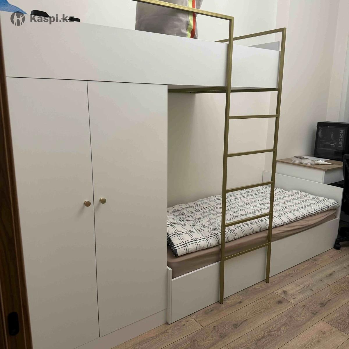 Двухъярусная кровать с встроенным вместительным шкафом. Верхняя кровать 1.90 , нижняя 2м. Глубина 90 см. Ширина шкафа 97см, глубина 90см. Внутри есть штанга для одежды. Одна большая полка и две маленькие. Общая длина конструкции 3м, высота 1.90. Состояние отличное. Имеется один хороший, чистый матрас. Цена окончательная!