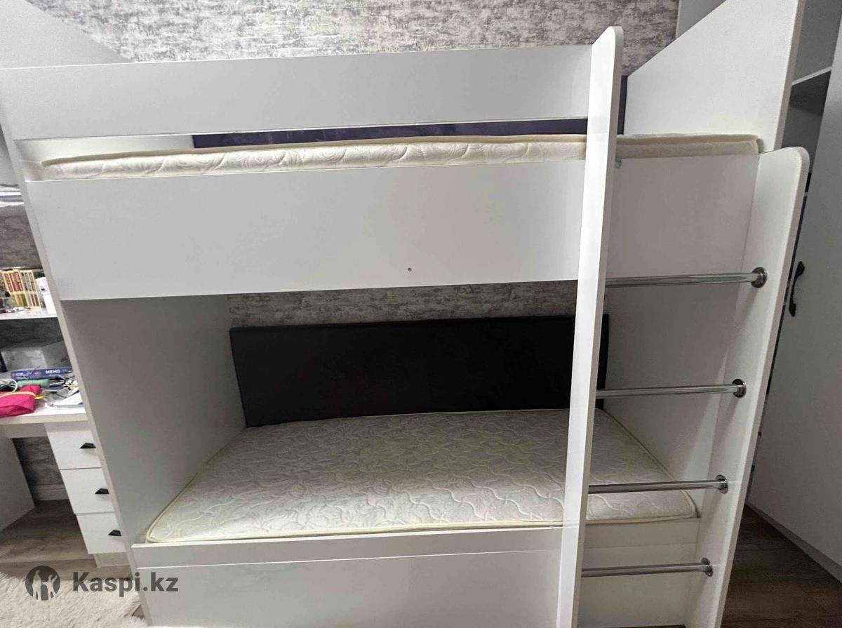 Продаю качественную двухъярусную кровать в отличном состоянии. Размеры: 190х90, высота 2 м - идеальна для детей, подростков и компактных комнат. Каркас прочный, устойчивая конструкция, все шурупы на месте. Лестница крепкая и аккуратная. Главный плюс - 2 полноценные матраса в подарок. Это большая экономия: не нужно ничего докупать, можно пользоваться сразу. В магазинах только один такой матрас стоит прилично, а тут - два бесплатно. Верхний ярус имеет косметические следы - не критично, легко перекрывается любым покрывалом, и кровать выглядит очень опрятно и уютно. Цена: 30 000 тг За двухъярусную кровать + два матраса - это реально удачная покупка. Выставляю цену ниже рыночной, потому что хочу продать быстро. Условия забора: Самовывоз. Кровать габаритная, в дверь целиком не проходит - нужны люди, которые смогут аккуратно разобрать и вынести. Все шурупы на месте, разобрать и собрать обратно легко. Пишите/звоните - вариант хороший, долго не задержится.