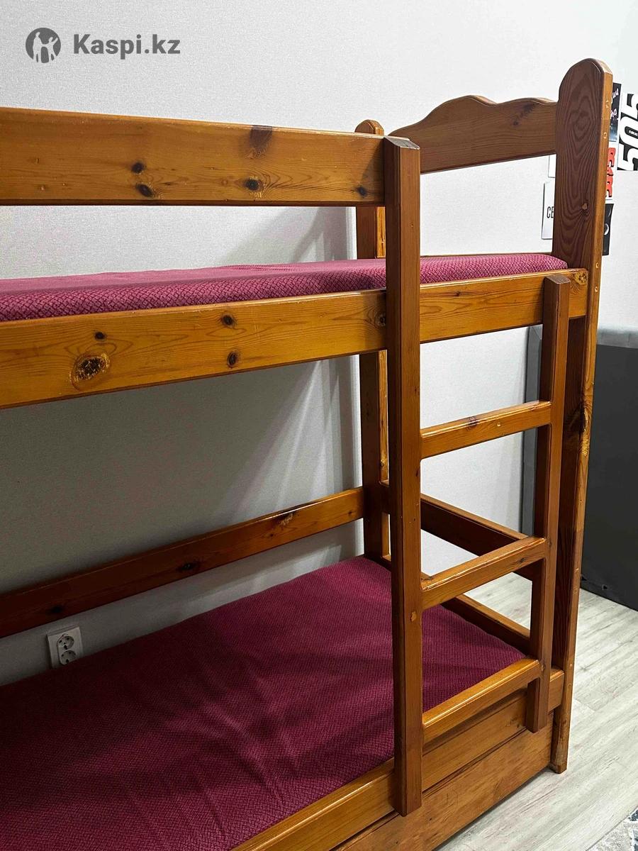 Продам двухъярусную кровать из дерева Очень прочная, 100% дерево, качественная сборка. Внизу выдвижной шкафчик для постельного, удобно убирать вещи. Подойдет и детям, и для гостевой. Торг