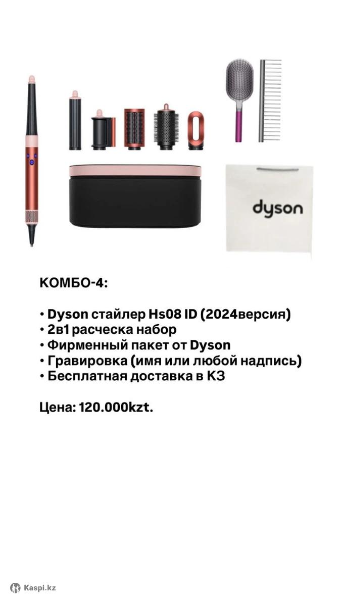 КОМБО-4: • Dyson стайлер Hs08 ID (2024версия) • 2в1 расческа набор • Фирменный пакет от Dyson • Гравировка (имя или любой надпись) • Бесплатная доставка в КЗ • есть все расцветки! Цена: 120.000kzt.