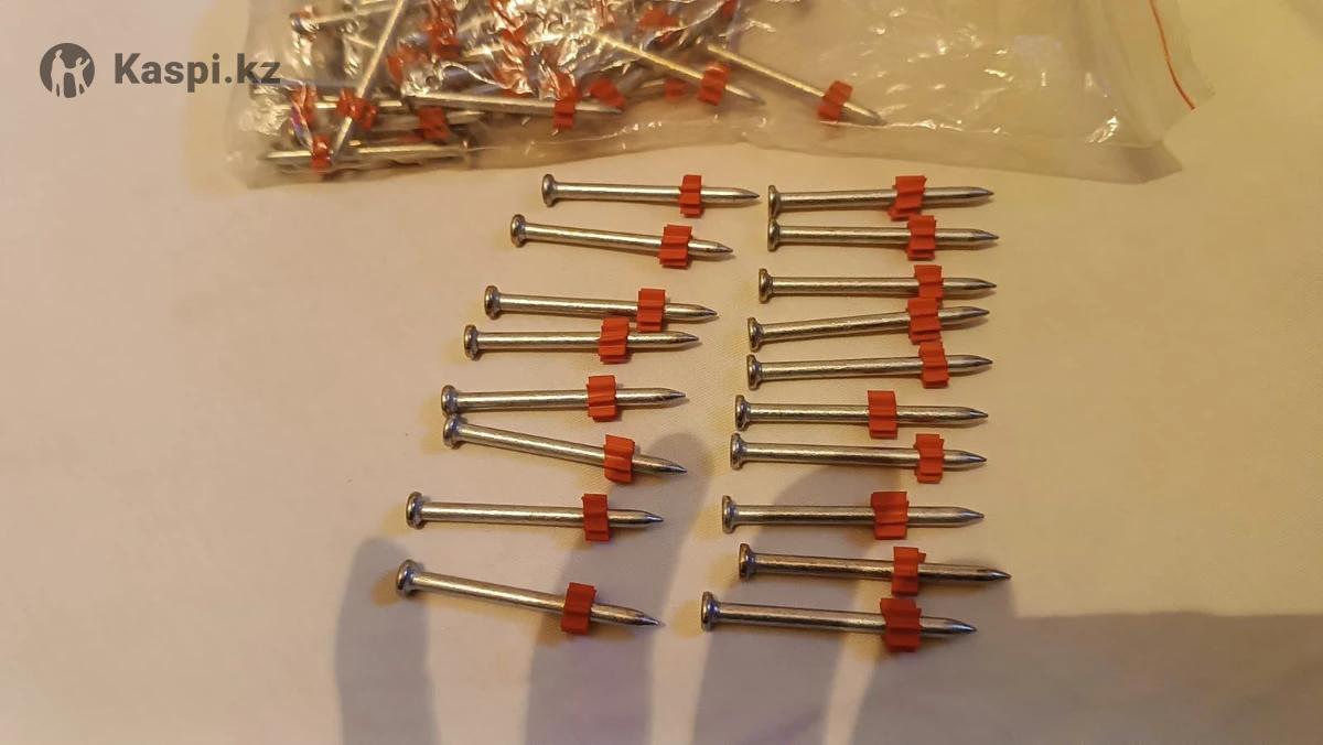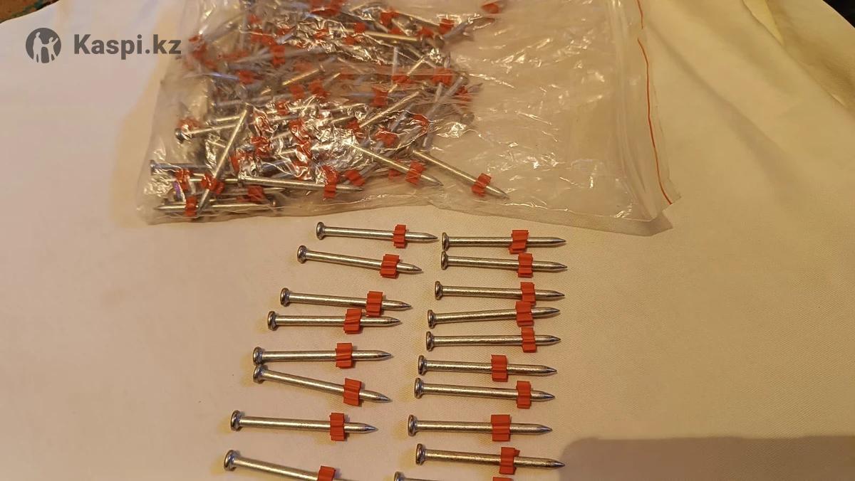 штука - 4тг Упаковка 100шт •Тип: дюбель-гвоздь для монтажного пистолета •Материал: закаленная сталь •Фиксатор: пластиковая шайба •Назначение: бетон, кирпич, металл •Совместимость: пистолеты под патроны 6.8 мм •Состояние: новые