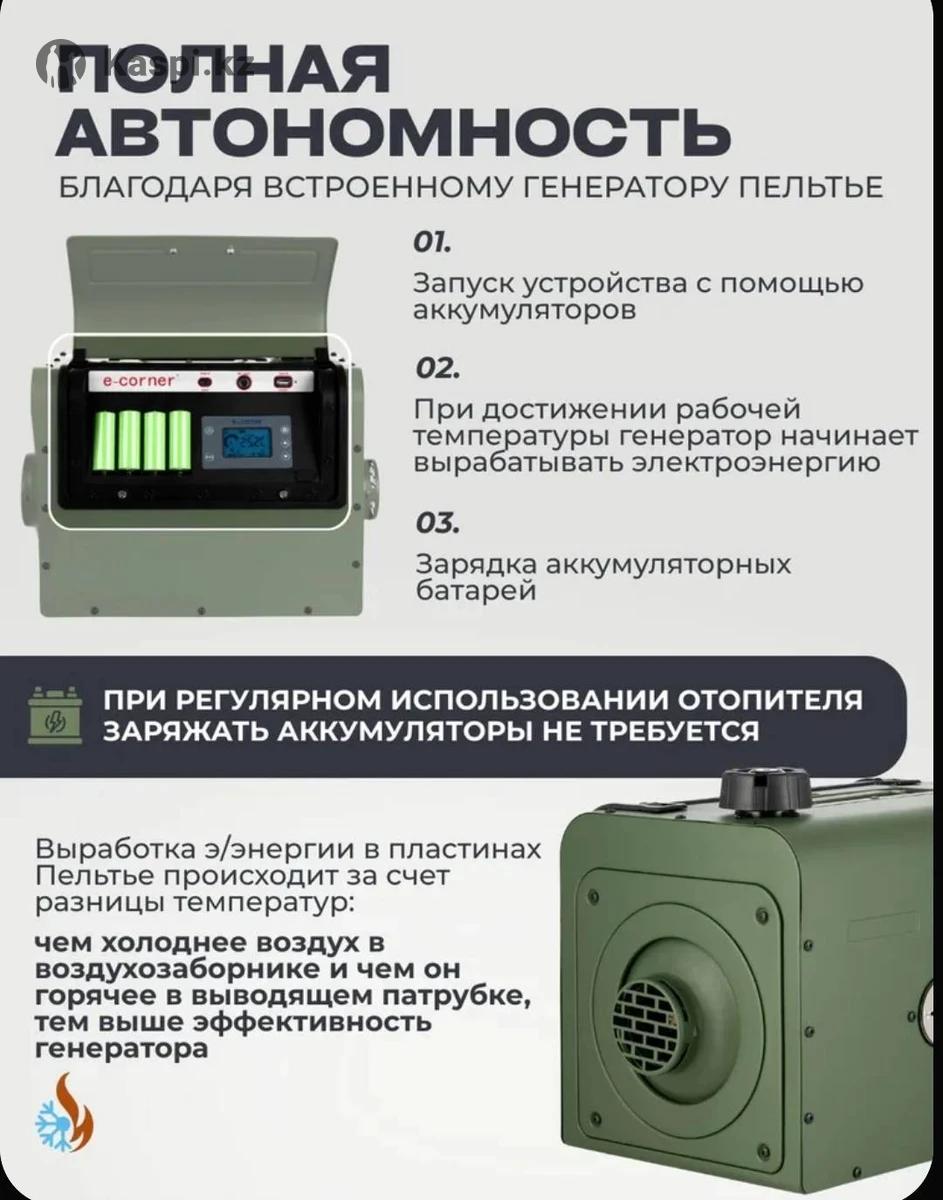 Отопитель E-Corner — это портативный автономный дизельный обогреватель, который широко применяется для обогрева палаток, автомобилей, небольших помещений и других мест без доступа к централизованному источнику питания. Его ключевая особенность заключается в том, что он может работать без внешнего источника электропитания, генерируя электричество, необходимое для его работы, из тепла, выделяемого при сгорании дизельного топлива. Основные характеристики и особенности Автономность: Благодаря встроенному генератору он не требует подключения к внешнему аккумулятору или сети 220 В, что делает его идеальным для использования в полевых условиях, например, на рыбалке, охоте или в кемпинге. Топливо: В качестве топлива используется дизельное топливо. Мощность: 5 кВт. Размер и вес: Устройство отличается компактными размерами и легким весом (12 кг), что обеспечивает его портативность. Корпус: Корпус изготавливается из высокопрочного алюминиевого сплава. Применение: Подходит для обогрева мобильных и временных объектов, таких как автомобили, суда, палатки и другие временные постройки.