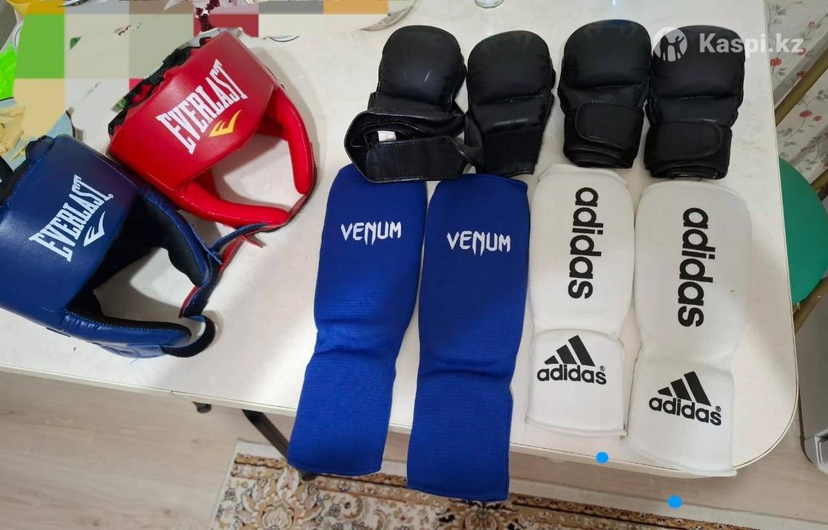 Шлем 2 шт Перчатки-черепашки 2пары Накладки на ноги 2 пары В отличном состоянии, практически не использовали, можно сказать новое. На возраст от 5 до 12лет, за весь комплект 30.000тг Подходит для тхэквондо или джиу-джитсу