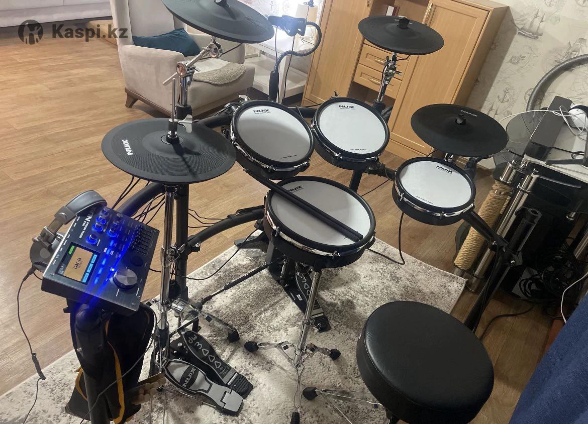 Хит 2025 года! Официальная международная версия NUX DM-8 с евророзеткой на 220 вольт и официальной гарантией! В идеальном состоянии и на 180 000 тенге дешевле чем в магазинах с возможностью просмотра перед покупкой. Полный комплект, стойки HiHat рама + новая в упаковке педаль Nux для бас барабана. Флагманская цифровая ударная установка DM-8 от компании NUX, оснащенная сетчатыми мембранами REMO Mesh Head с инновационными технологиями, дающими барабанщикам аутентичное акустическое ощущение и реалистичную выразительную игру. DM-8 сочетает в себе реалистичные ощущения и звук, широкие возможности настройки под себя и подключения, функции записи, множество интересных функций, разработанных для современного барабанщика. Вы также можете настроить каждый элемент по своему вкусу, чтобы создать уникальный звук. Эти барабаны оснащены встроенным метрономом и многослойной записью. NUX DM-8 также имеет USB-порт, который позволяет подключиться к компьютеру и использовать его в качестве MIDI-контроллера или для записи ваших треков. эти барабаны являются идеальным выбором для домашней студии или живых выступлений. Стул и кардан в цену не входят, Возможен обмен предлагайте варианты.