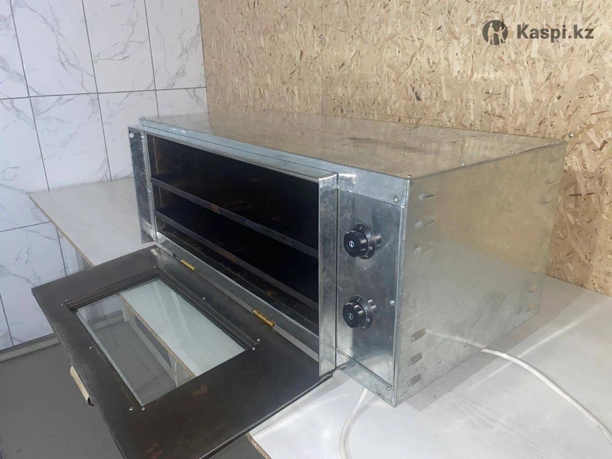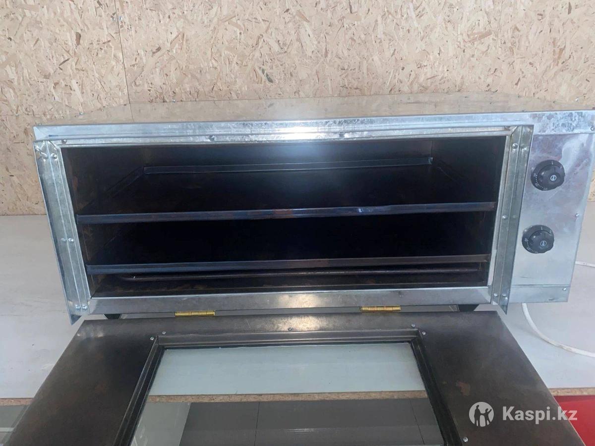 электрическая печь (духовой шкаф), промышленного или полупромышленного типа. Используется для выпечки хлебобулочных изделий, пиццы, кондитерских изделий. Оснащена терморегуляторами, металлическим корпусом и стеклянной дверцей для контроля процесса приготовления.