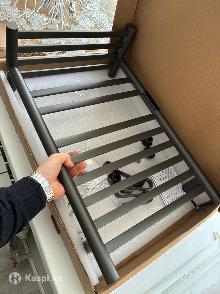Новый электрический полотенцесушитель, правое соединение, в комплекте верхний ярус полочка и крючки , покупали в Астане за 40 тыс , не подошла сторона соединения , трендовый цвет-графит