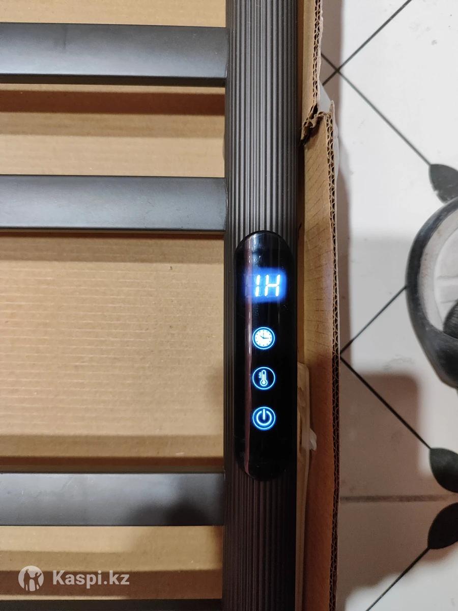 Цвет оруженная сталь, темно серый. Размеры 615мм400мм. Управление сенсорное , установка температуры и времени работы. На кабеле есть защита (узо) . Состояние хорошее.