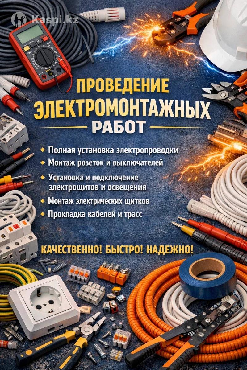 Электромонтажные работы ⚡ • Полная замена и монтаж электропроводки • Установка розеток и выключателей • Монтаж и сборка электрощитов • Прокладка кабеля и монтаж освещения Работаем аккуратно и качественно. 📍 Атырау