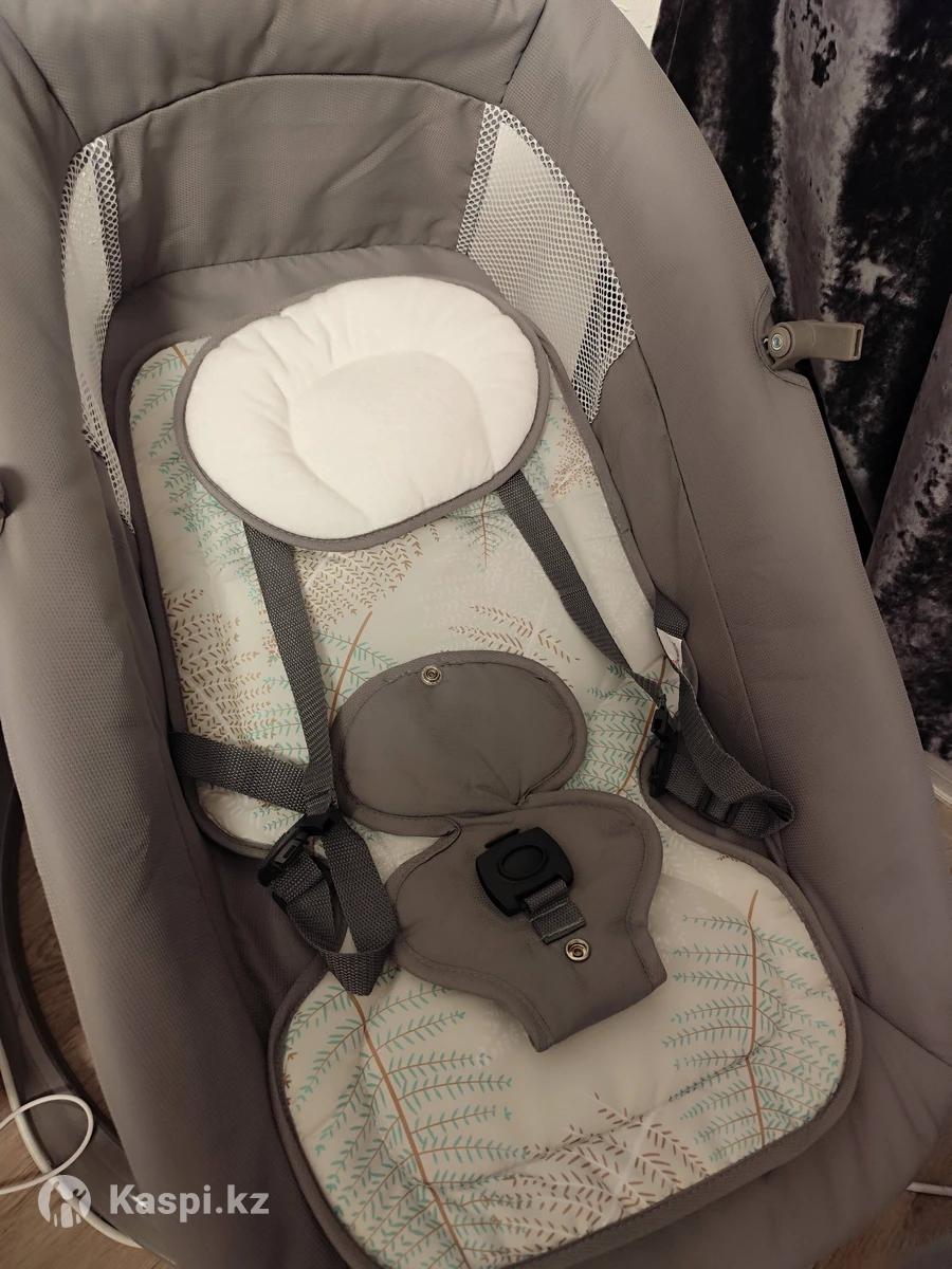 Покупали недавно за 26. Использовали несколько раз на фото видно как новая Есть разная музыка, таймер, регулируется скорость, пульт и две игрушки
