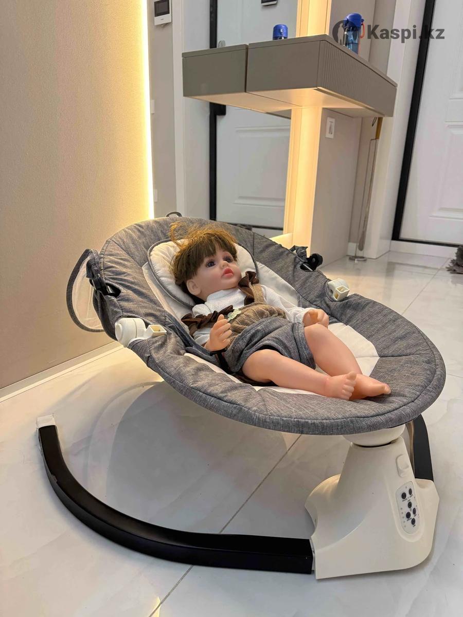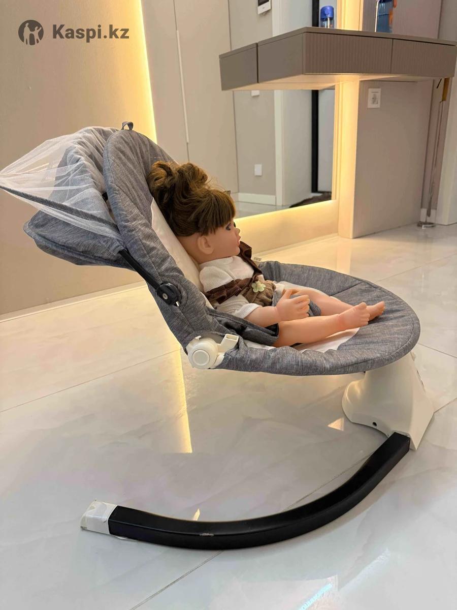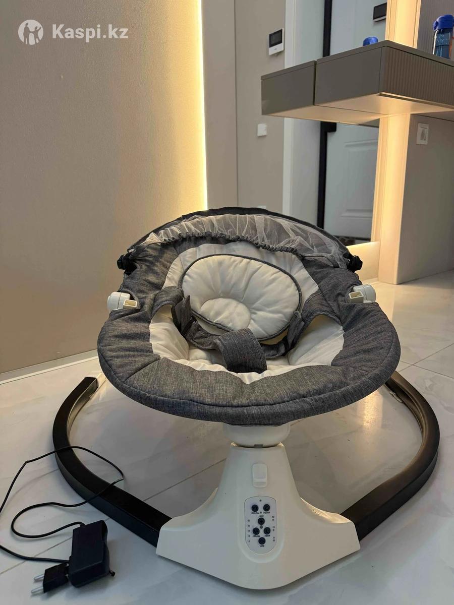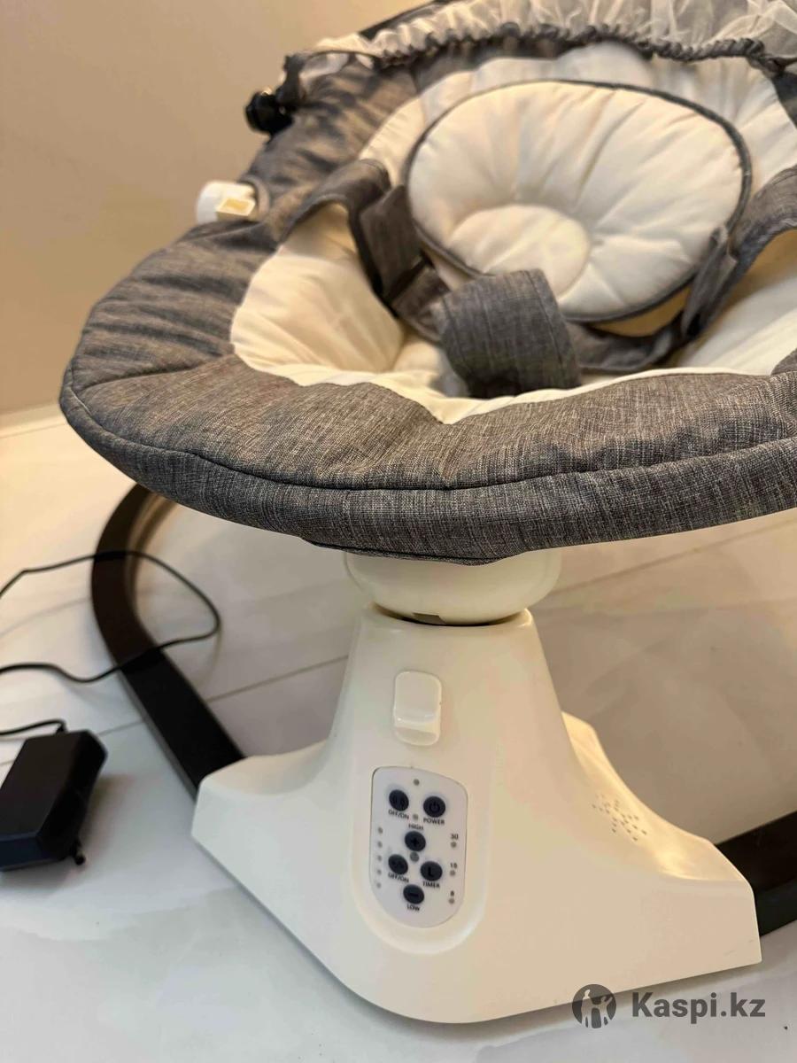 Электронная качалка , несколько режимов качания , с музыкой или без. Таймер на 8,15 и 30 минут. Все режимы работают. Примерно до 6 месяцев можно пользоваться. Козырек снимается . Также есть столик . Ремень безопасности . Наклон регулируется. Освобождает руки от качания. На фото кукла 56 см . Забирать с жк достар , на строителей