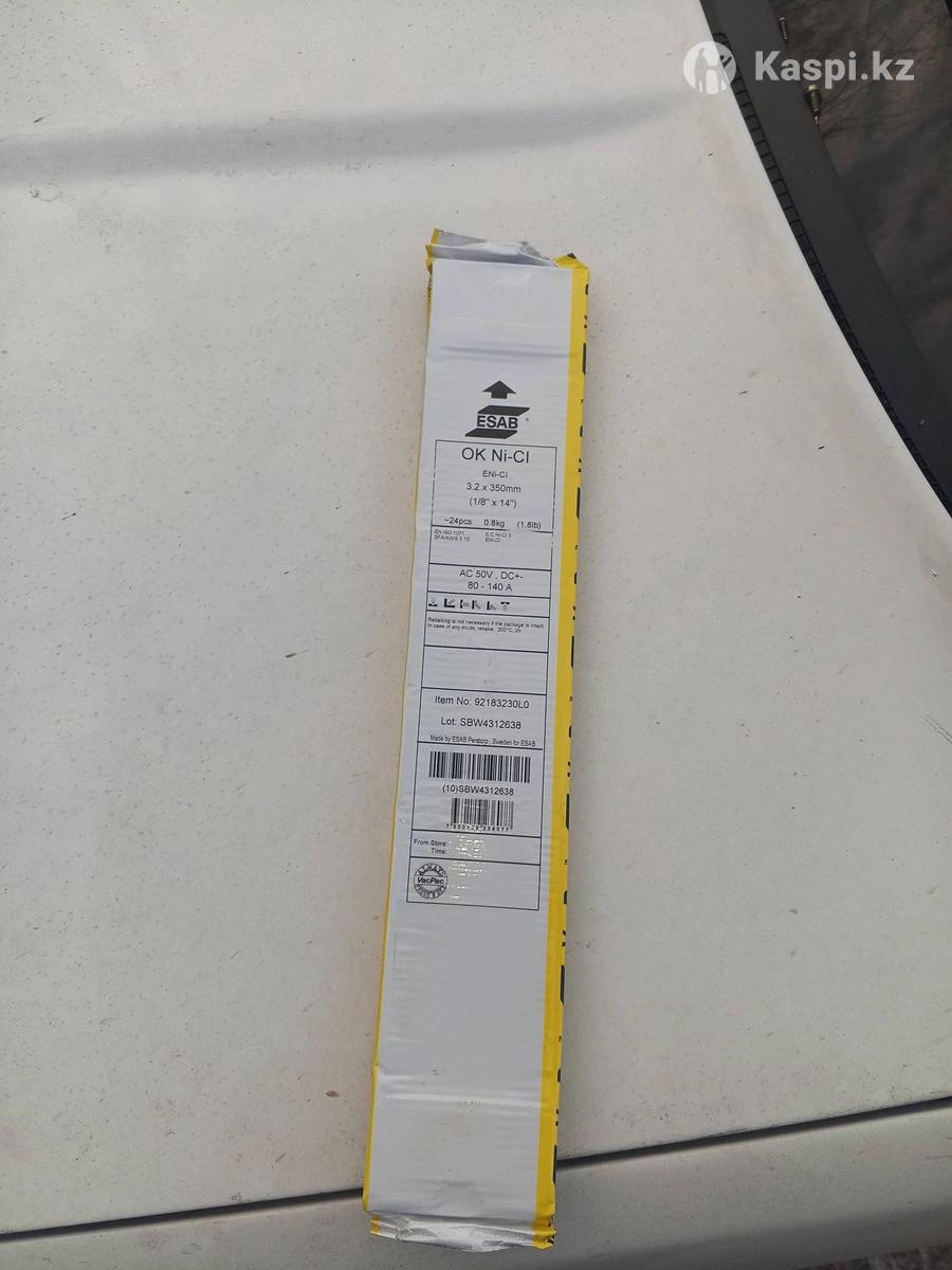 Электроды ESAB OK Ni-CI 3.2×350 мм (по чугуну) Продаются никелевые электроды ESAB OK Ni-CI для сварки и ремонта чугуна. Характеристики: Диаметр: 3.2 мм Длина: 350 мм Тип: Eni-CI (никелевые) Ток: AC / DC+ Рекомендуемый ток: 80–140 А Упаковка: 0.8 кг (≈24 шт.) Преимущества: Отлично подходят для сварки серого, ковкого и высокопрочного чугуна Минимальный риск трещин Хорошая обрабатываемость шва (легко сверлится и точится) Стабильная дуга и качественный шов Идеальны для ремонта блоков двигателя, корпусов, станин, чугунных деталей и оборудования. Состояние: новые, в заводской упаковке. Цена договорная. Возможна скидка при покупке нескольких пачек.