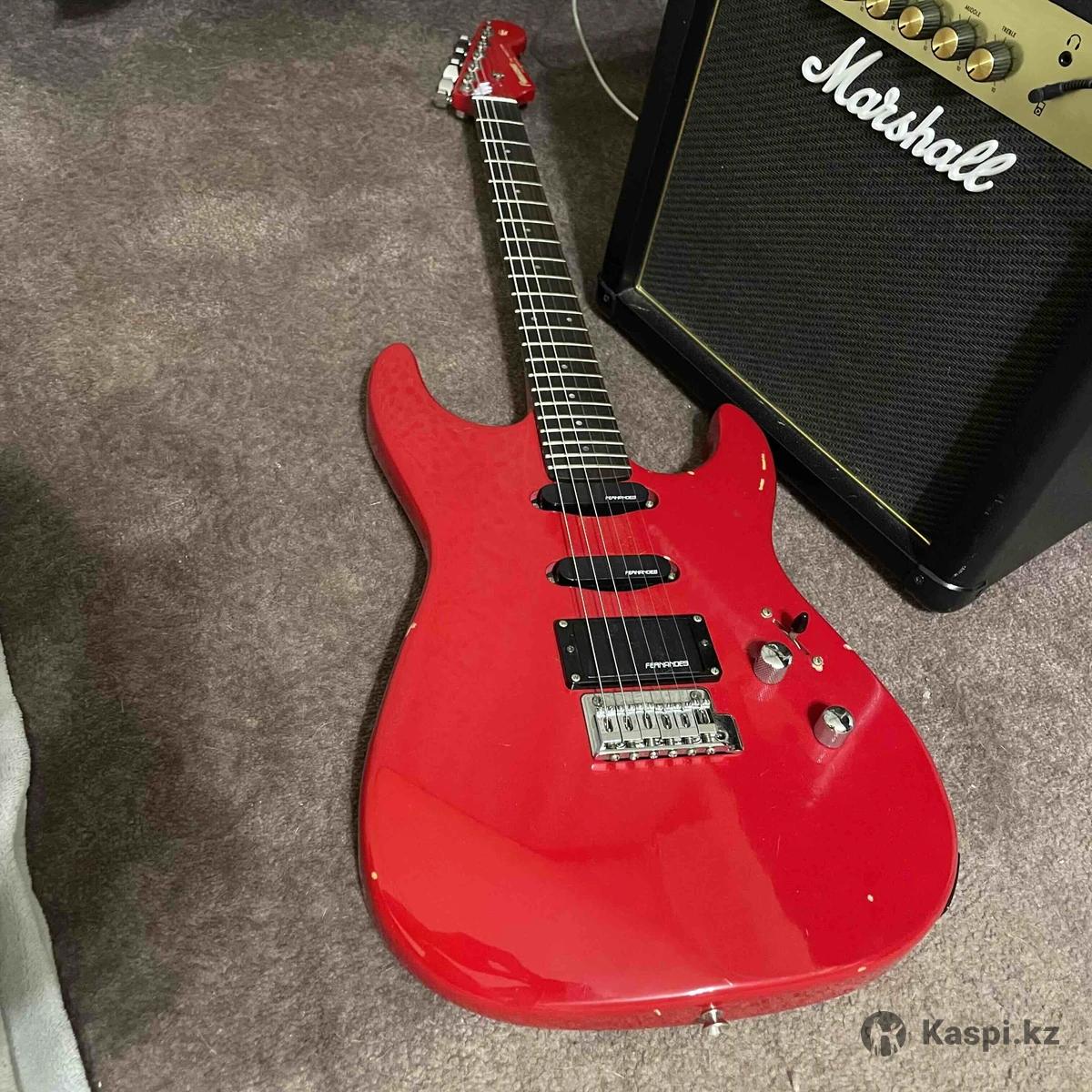 Fernandes The Function SSH-40 (Japan) Продаю свою Fernandes The Function SSH-40 — японская серия, качественная сборка и отличный звук. Характеристики: •Конфигурация звукоснимателей: SSH (2 сингла + хамбакер) •Родные датчики Fernandes •Есть отсечка хамбакера (coil split) — можно получить звук как у сингла •5-позиционный переключатель •Винтажное тремоло •Удобный, быстрый гриф •Цвет: ярко-красный Звук: Очень универсальная гитара. Бриджевый хамбакер — плотный, жирный перегруз. С отсечкой можно получить более стеклянный, яркий звук под фанк, чистый рок или арпеджио. Состояние: Полностью рабочая. Есть косметические сколы лака (видно на фото), на звук и строй не влияют.
