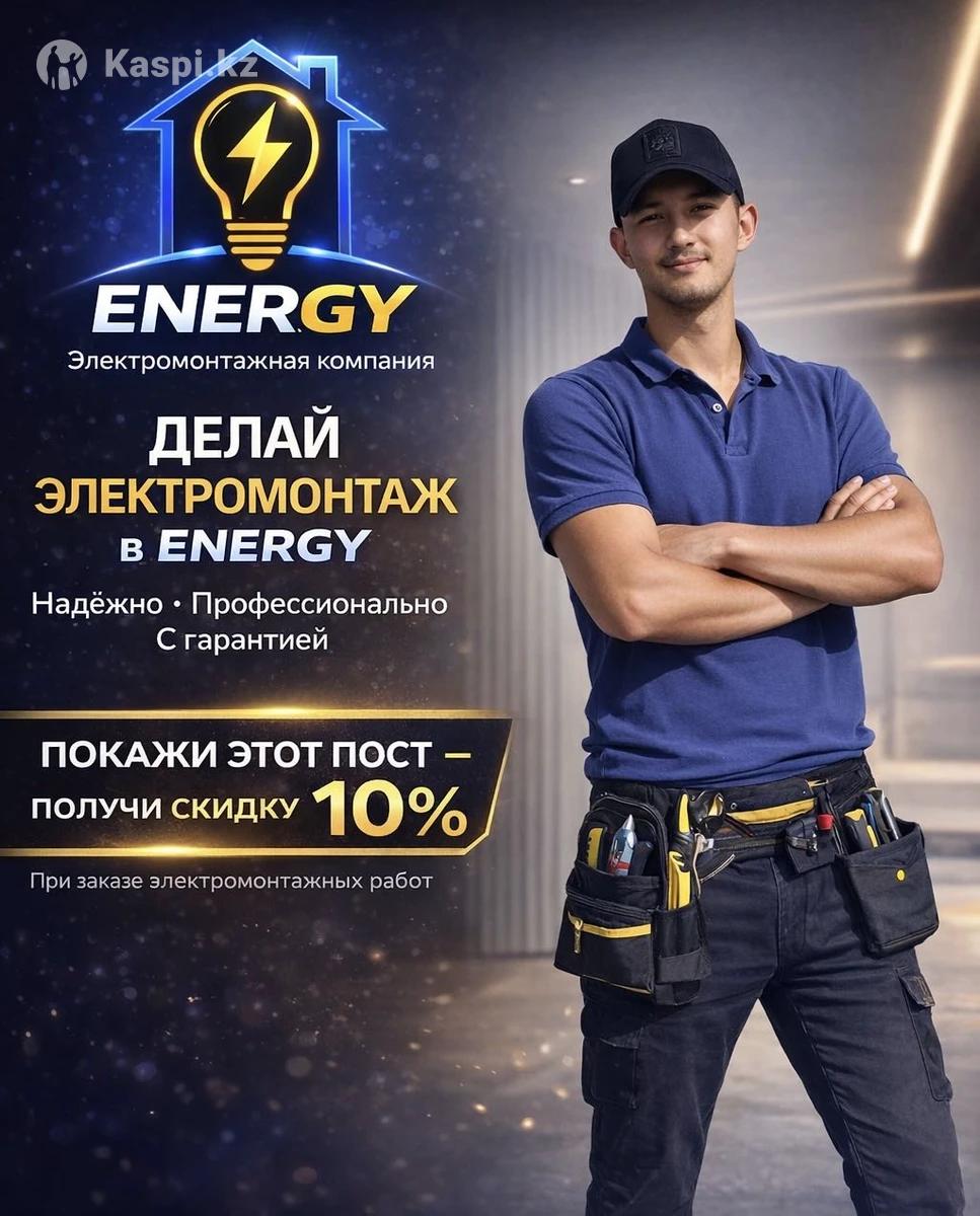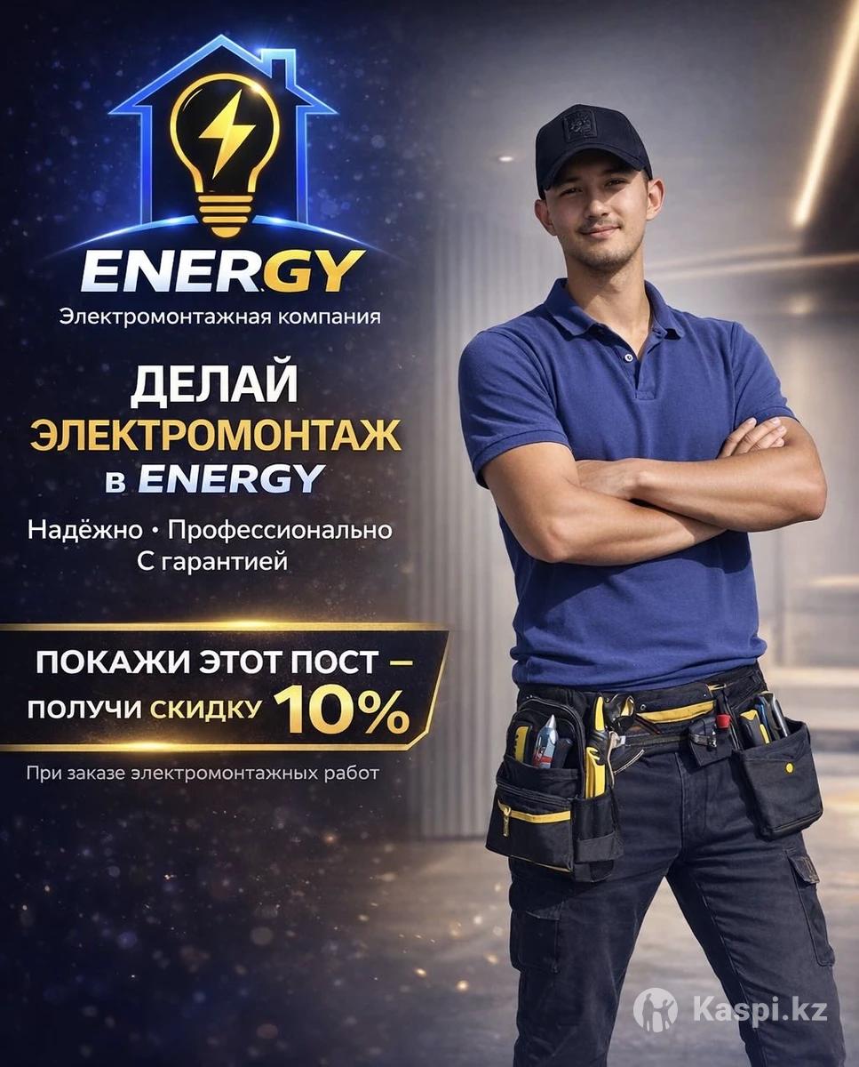 Профессиональный электрик с опытом . Выполняю все виды электромонтажных работ: • Монтаж розеток и выключателей • Установка и подключение светильников, бра, люстр • Прокладка проводки с нуля • Сборка и подключение электрощитов • Установка УЗО, автоматики • Умный дом, Wi-Fi розетки, датчики движения • Работаем по проекту и без Поченьу выбирают нас: ✓ Чисто и аккуратно ✓ Честные цены ✓ Бесплатная консультация ✓ Выезд по Алматы и области ✓ Гарантия до 12 месяцев