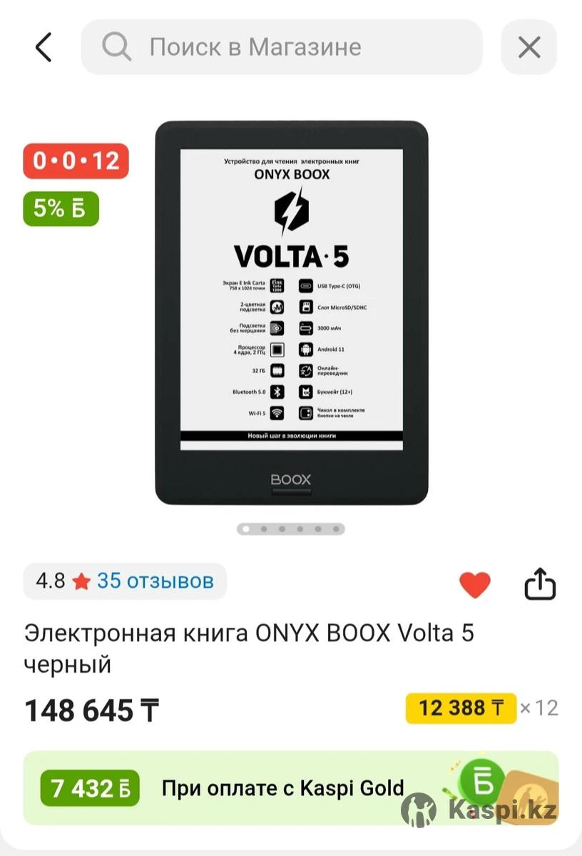 Продаю ридер Onyx Boox Volta 5 в отличном состоянии. Был в использовании 6-7 месяцев. Экран 6" E Ink Carta с регулируемой подсветкой и температурой света - приятно читать днем и ночью, глаза уставать не будут. Есть возможность устанавливать большинство приложений из Google Play, в том числе всякие переводчики или даже ChatGPT. Довольно легкий и компактный, встроенная память 32гб, есть возможность установить microSD до 128гб. Имеется WI-FI и Bluetooth, заряд держит отлично. Использовался бережно, минусов нет, торг уместен.