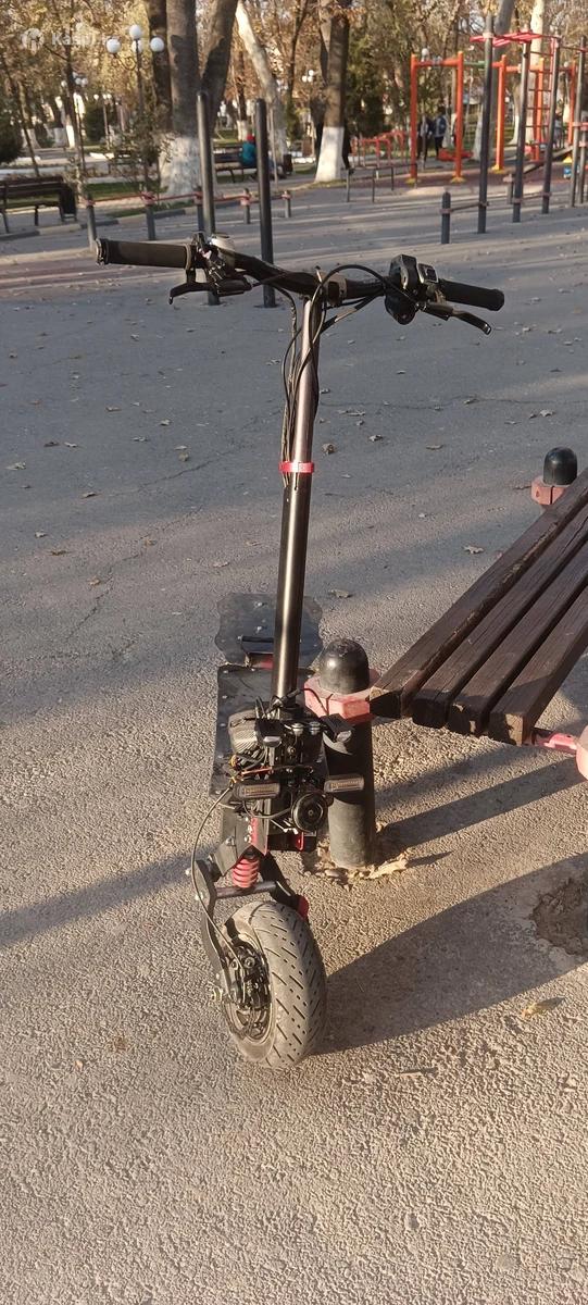 (По вопросам писать в !!!!) Полностью кастомный Самокат в хорошем состоянии Заменены задние подшипники 2 мотора На данный момент ограничение 2500ват Батарея 18.2ач 48в Контроллер fardriver 72260 maverick Контроллер управляется с приложения(можно менять мощность и т д ) Полностью рабочий самокат Механические тормоза Колодки ставил новые Разгон очень хороший Едет быстро 60/65кмч по жпс Также есть габариты поворотники сигнал и фары мощные Торг в пределах разумного ,пишите на или звоните