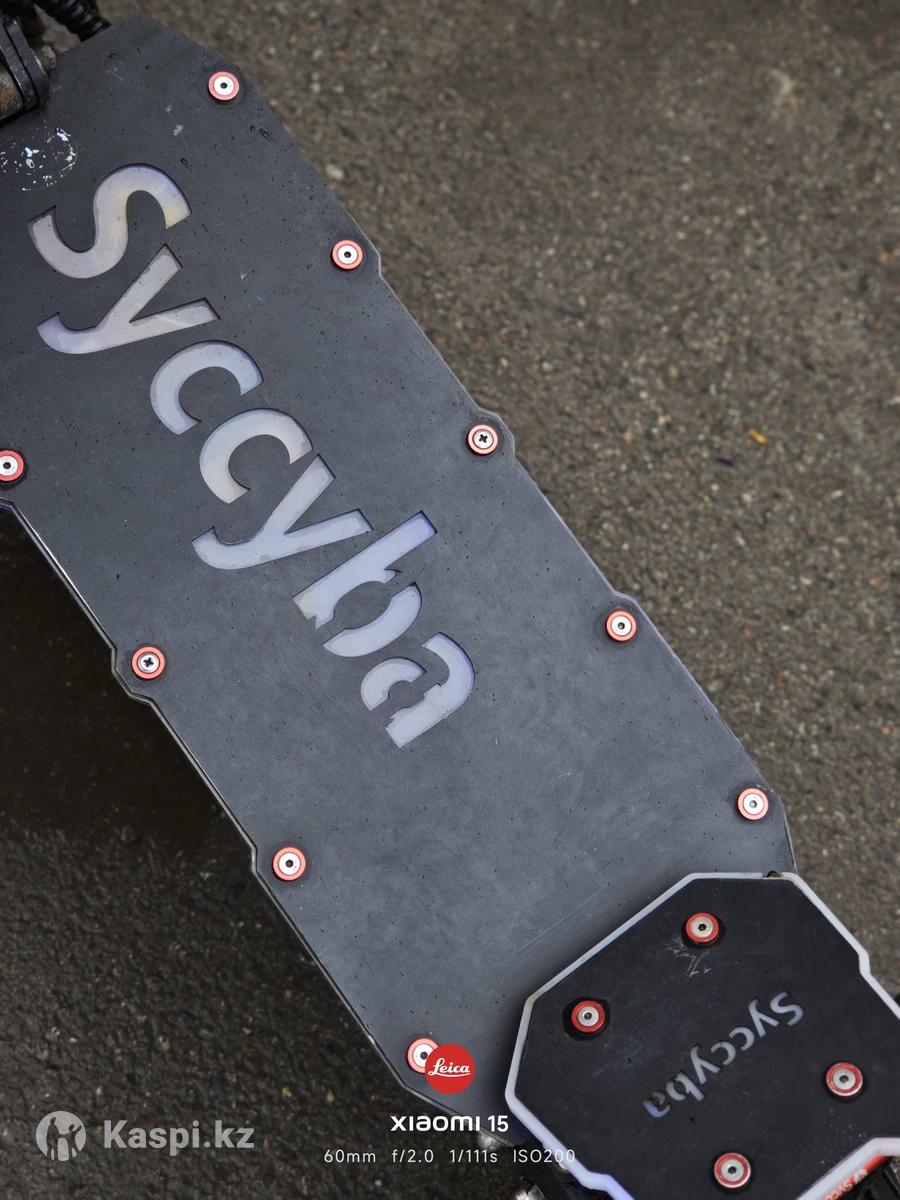 Продаётся Syccyba pantera 2.0 Самокат очень устойчивый без намека на "вобблинг", с большим запасом хода, и безумно мощный, в хорошем состоянии, Идеален для кастома, проекта, без люфтов, скрипов, и т.д. Очень богатый комплект. Документы имеются. Торг реальным покупателям. Недавно перебрали и залили новое масло в переднюю вилку, также перебрали задние амортизаторы и настроили пневмо амортизаторы, все смазали и поставили, теперь подвеска очень мягкая как у КРУЗАКА Мощность: 10000w ( 5000x2 ) Скорость: до 100 км/ч Запас хода: до 120 км в зависимости от веса, скорости, условий и т.д. Привод: полный 2WD Батарея: 72v 50A на призматиках Тормоза: 2 поршневые xod преимущества Syccyba Pantera 2.0: Жёсткая и массивная рама Самокат тяжёлый и устойчивый, не «играет» на скорости. Полный привод 10000W Лучшее сцепление и контроль, уверенно едет в гору и по плохой дороге. Большие 13-дюймовые колёса Лучше проходят ямы, стыки и неровности, чем стандартные 10–11". Комфортная подвеска, мотовилка, и два пневматические амортизаторы сзади дают, мягкий ход даже на плохом асфальте и плитке. Гидравлические дисковые тормоза вместе с рекуперацией даёт, надёжное торможение на высоких скоростях. Высокая стабильность на прямой За счёт мотовилки, демпфера, веса, не склонен к вобблингу. Яркое LED-освещение и подсветка Хорошо видно ночью, самокат заметен в потоке. Подходит для дальних поездок Большая батарея — можно ездить долго без подзарядки. интересует обмен на эти самокаты :: с вашей доплатой Kugoo, Kaabo, Speedway, Joyor, Speed Savage, Teverun, Dualtron, Ultron, Scatron, Dokma, Vsett, Ruitoo, Syccyba, Zero, Blade, Xiaomi, Ninebot, Segway, Midway, Tribe, Halten, E-Twow, White Siberia, Yeepme, Yokamura, Toursor, Minimotors