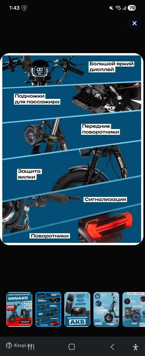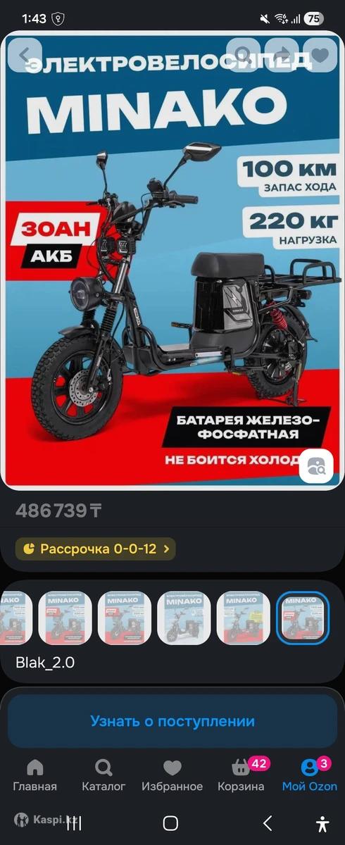 Minako TITAN 2.0 2025 60V 30Ah Брал для езды, но приезжаю Поездил буквально 5 дней Брал на Озон, мощность можно разблокировать номинал 240w едет 25км/ч, на максимум выдает 1500w 55км/ч Максимальная нагрузка 220кг