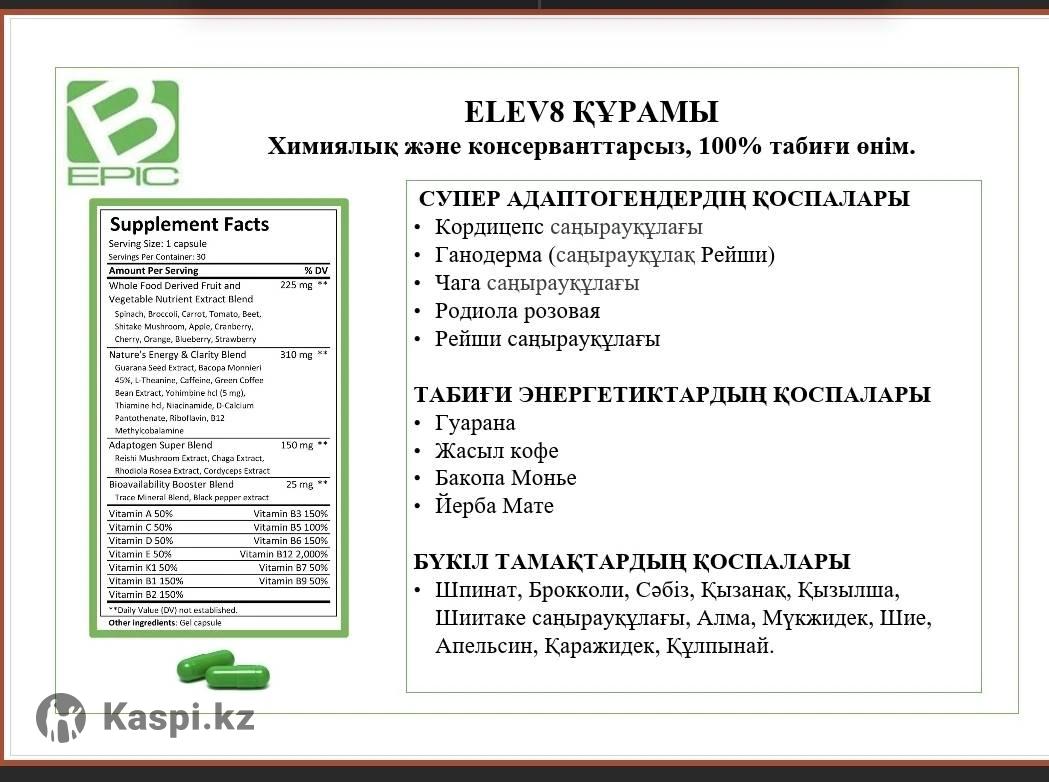 --- 🌱 ELEV8 – Клеткалық қуат көзі! ❓ Неліктен ELEV8 ішу керек? ✔️ 23 өсімдік компоненті ✔️ Табиғи дәрумендер мен минералдар ✔️ 100% табиғи өнім 🔹 Артықшылықтары: 💚 Иммунитетті нығайтады 💚 Энергия береді 💚 Зат алмасуды жақсартады 💚 Ұйқыны қалыпқа келтіреді 💚 Артық салмақтан арылуға көмектеседі 💚 Ми жұмысын жақсартады 💚 Жасартады ✨ Нәтижесі: – Жақсы көңіл-күй – Күш-қуат – Ұзақ әрі сапалы өмір ELEV8 – бүгінгі және болашақтың тренді! 🌿