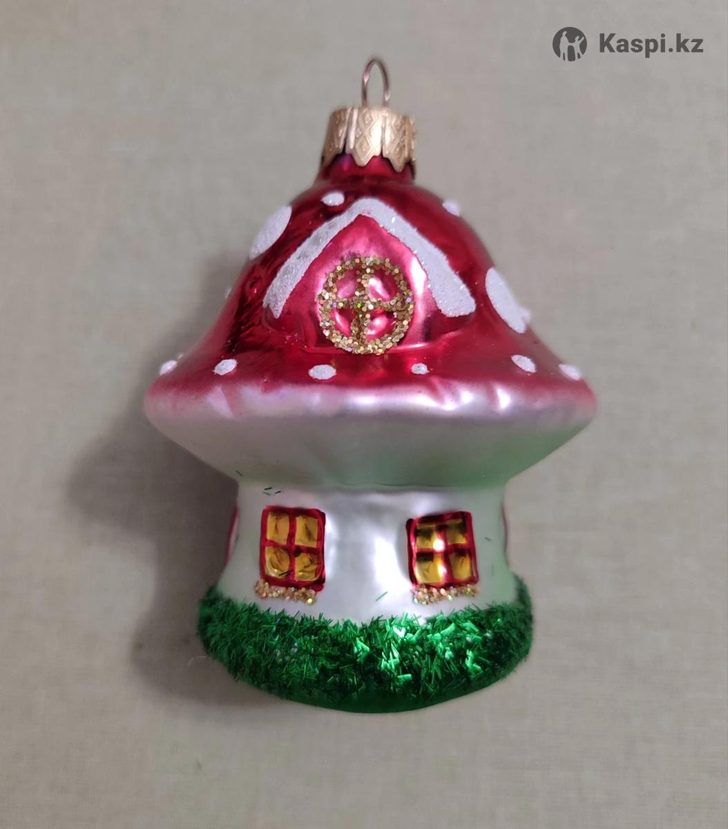Ёлочная игрушка "Домик для гномов" или "Гриб-домик", стекло, размер 7х8,5 (без учета крепления).