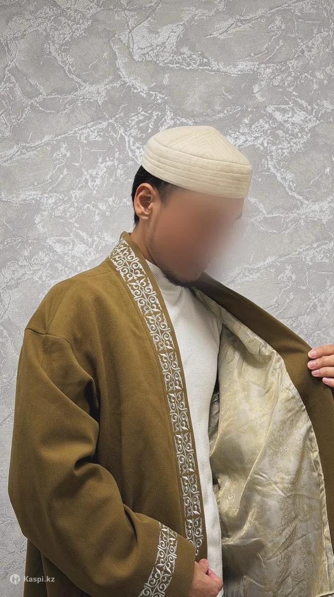 Эксклюзивті этно-шапан — асылдық пен ұлттық мұраның айқын көрінісі. Терең зәйтүн түстес реңкі мен нәзік өрнекті кестесі иесінің мәртебесі мен талғамын айқындайды. Талғампаз пішімі кез келген салтанатта — тойда, құдалықта немесе ерекше мерекеде — айбынды әрі сенімді бейне қалыптастырады. Өлшемі: 52 (L–XL мөлшеріне сай келеді). Матасы: тығыз костюмдік мата, сапалы, пішінін жақсы ұстайды және қымбат көрінеді. Эксклюзивный этно-шапан — воплощение благородства и национального наследия. Глубокий оливково-золотистый оттенок и изящная орнаментальная вышивка подчёркивают статус и безупречный вкус владельца. Изысканный крой создаёт величественный силуэт и уверенный образ на любом торжестве — будь то той, құдалық или особый семейный праздник. Размер: 52 (подойдёт на L–XL). Ткань: плотная костюмная, качественная, хорошо держит форму и выглядит дорого.